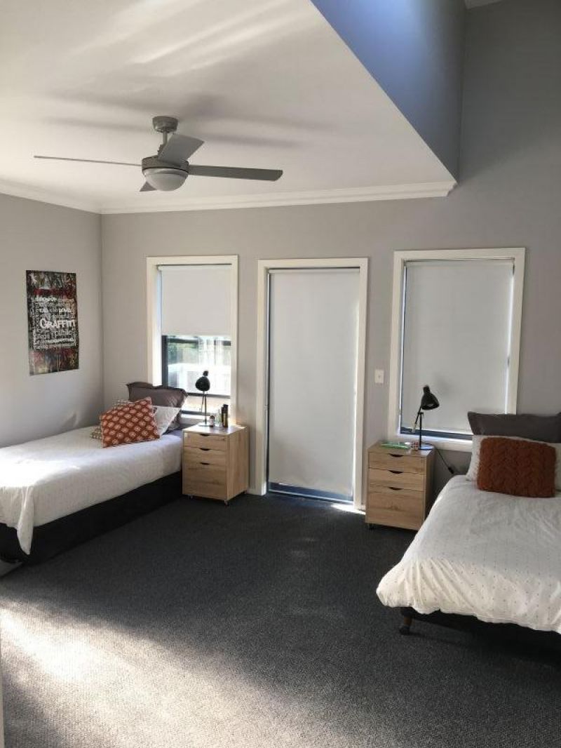 The second level contains 2 queen size rooms, one with a walk in robe, the other with built ins, each with their own private decks. Between the rooms is a lovely main bathroom with separate bath and shower.