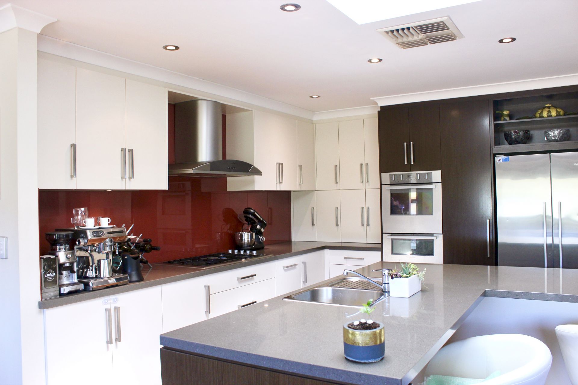 - Modern and high spec chef's kitchen with stone bench-tops and high-end appliances including double oven, double drawer dishwasher and plumbed in double door fridge plus more bench and cupboard space than you could possibly imagine.