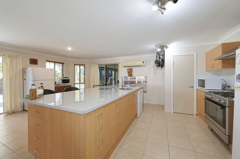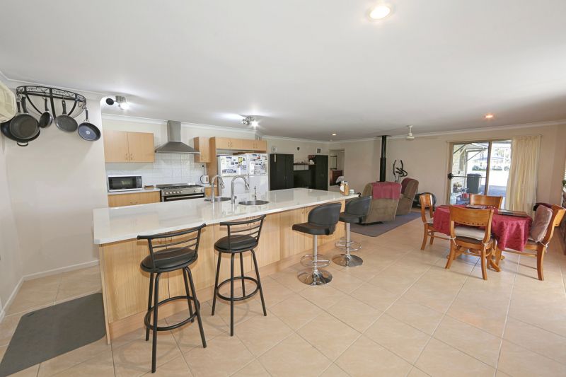 The kitchen features a huge island bench with 2 sinks each with own tap and breakfast nook.