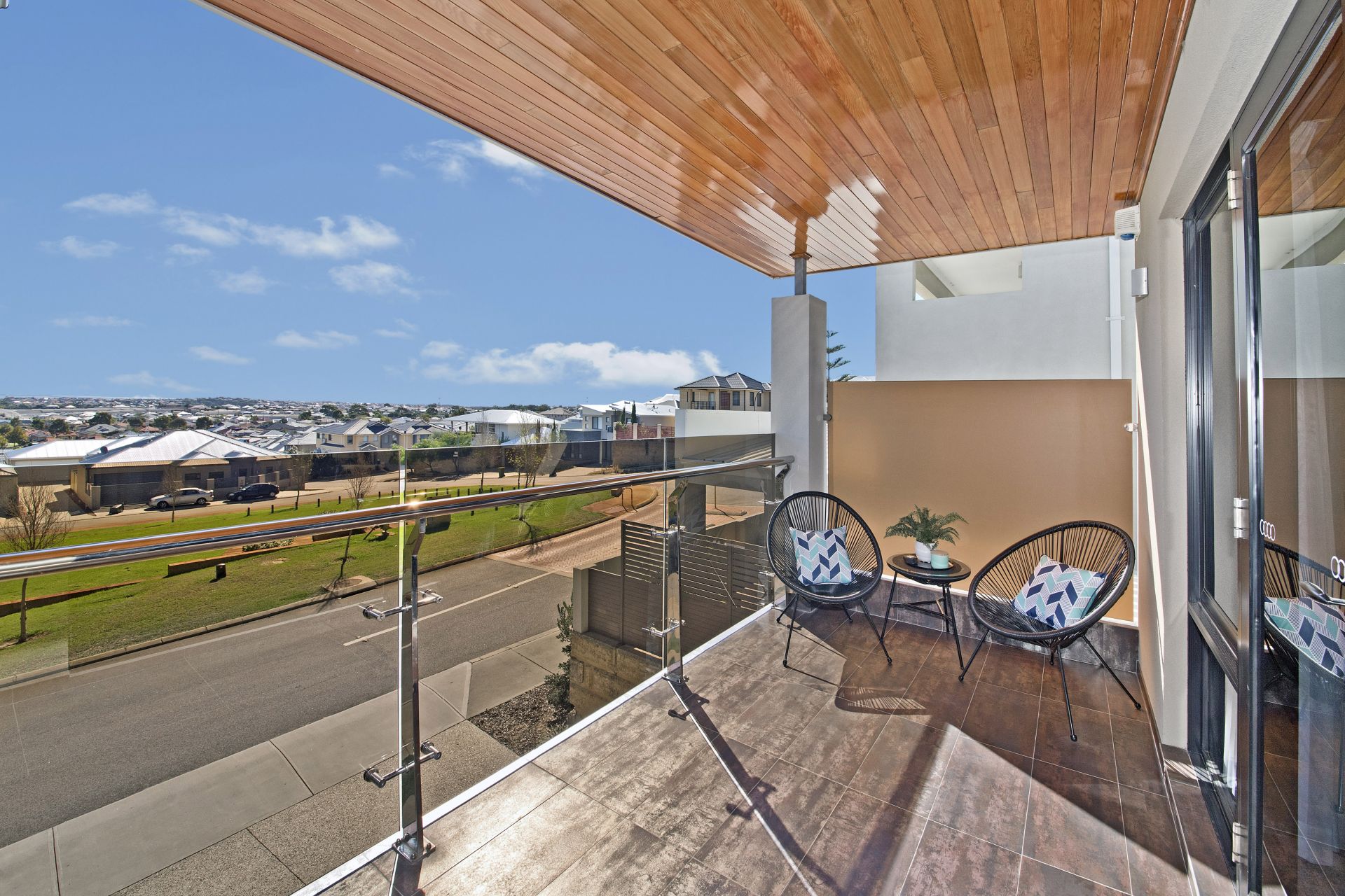 Head up a few stairs to a mezzanine level looking down onto the dining room and then up a few more steps to reach the top floor comprising of a main ensuite bedroom with walk-in robe and access to a balcony capturing widespread ocean views, two more bedrooms with wall-to-wall mirrored robes and a deluxe family bathroom and powder room matching the designer style of the main ensuite bathroom.