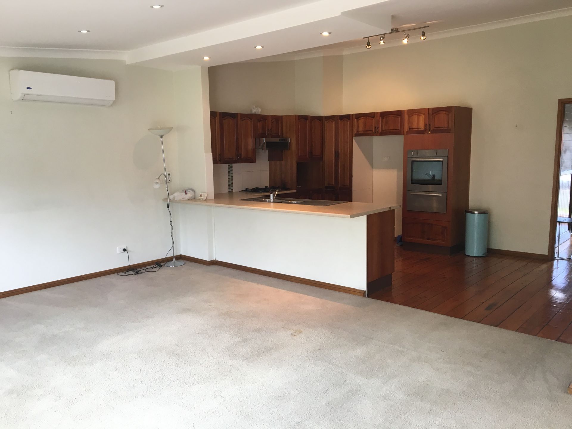 -Large kitchen with breakfast bench and gas cook top, electric oven
