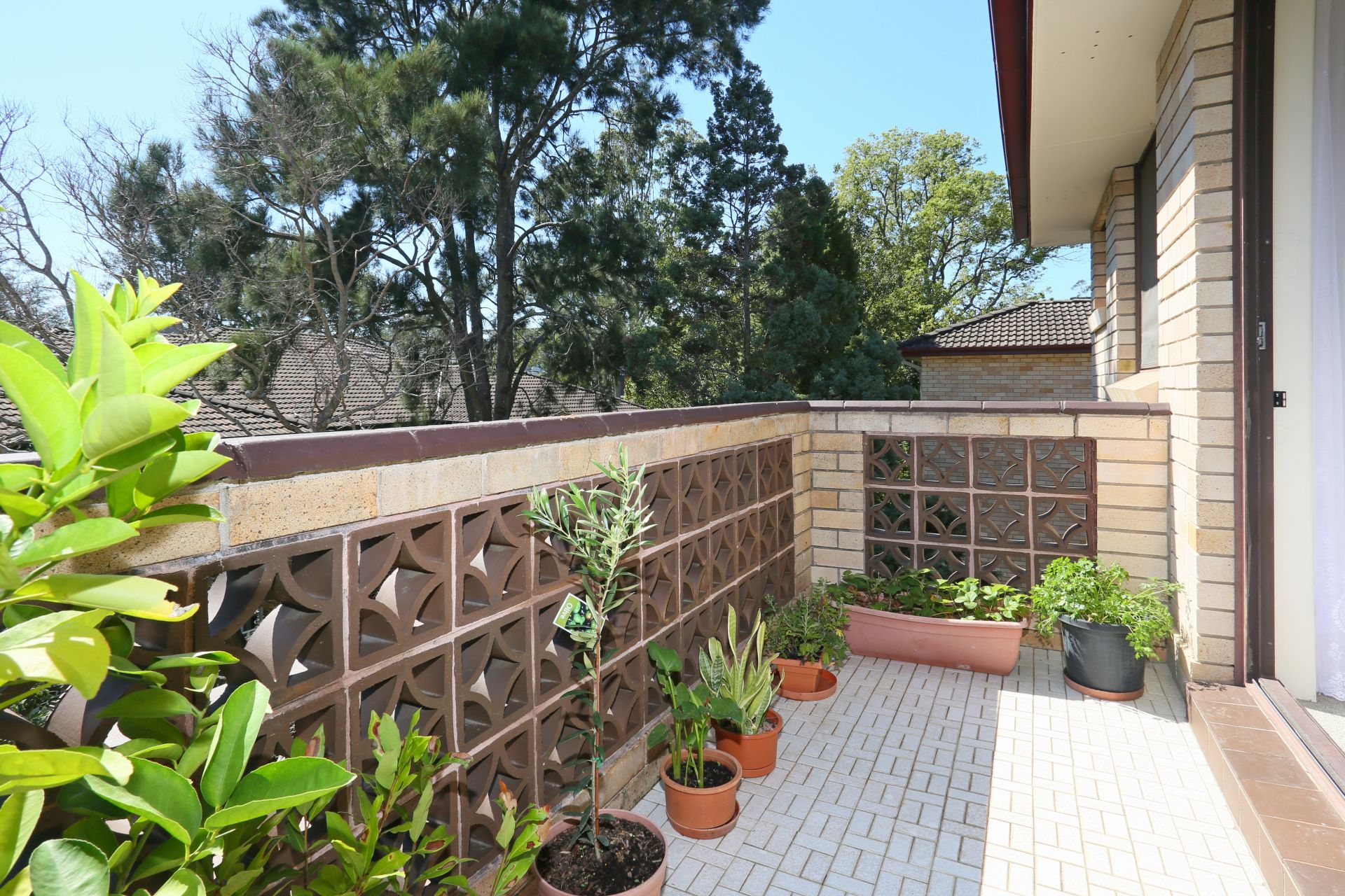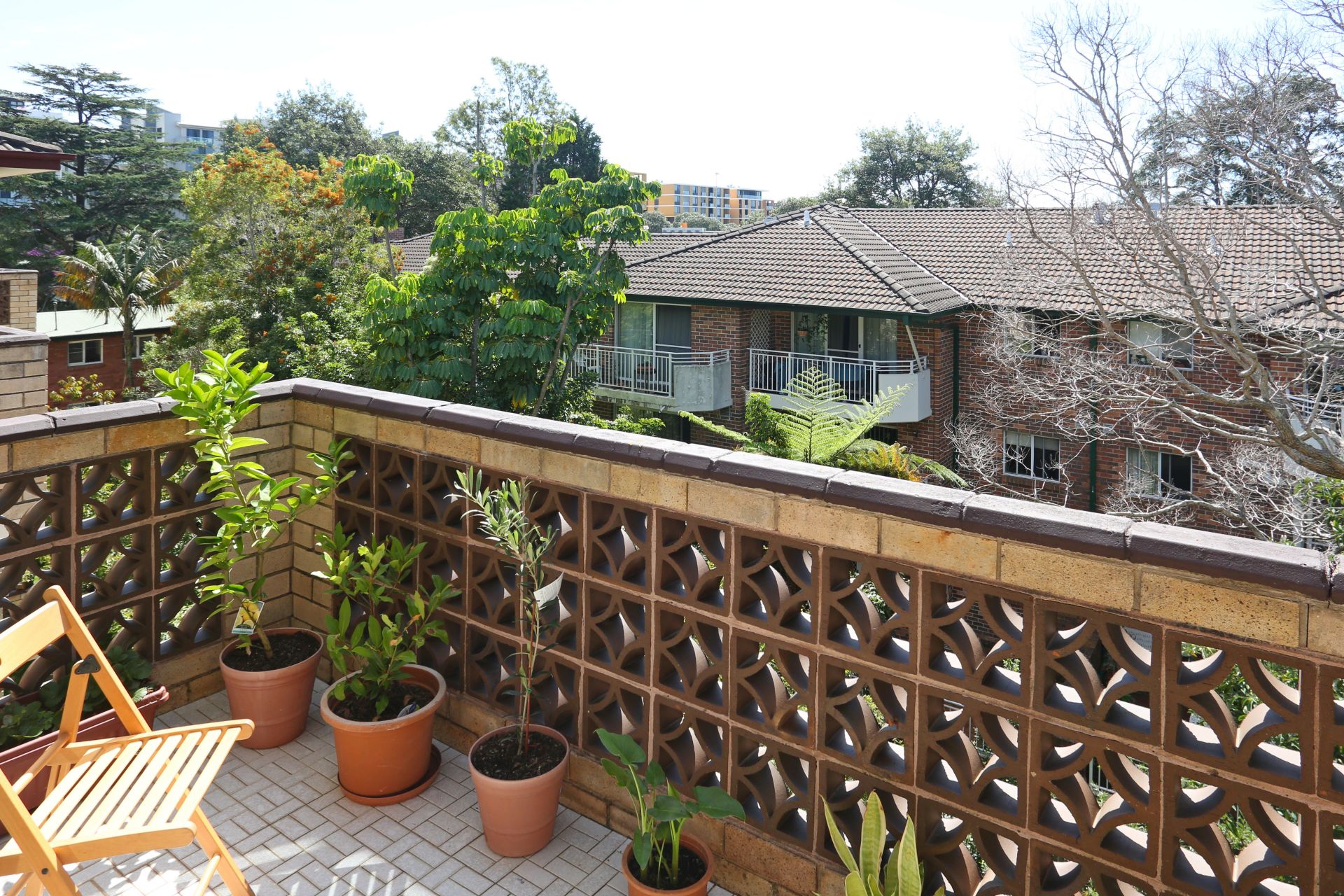 - sunny balcony with leafy views