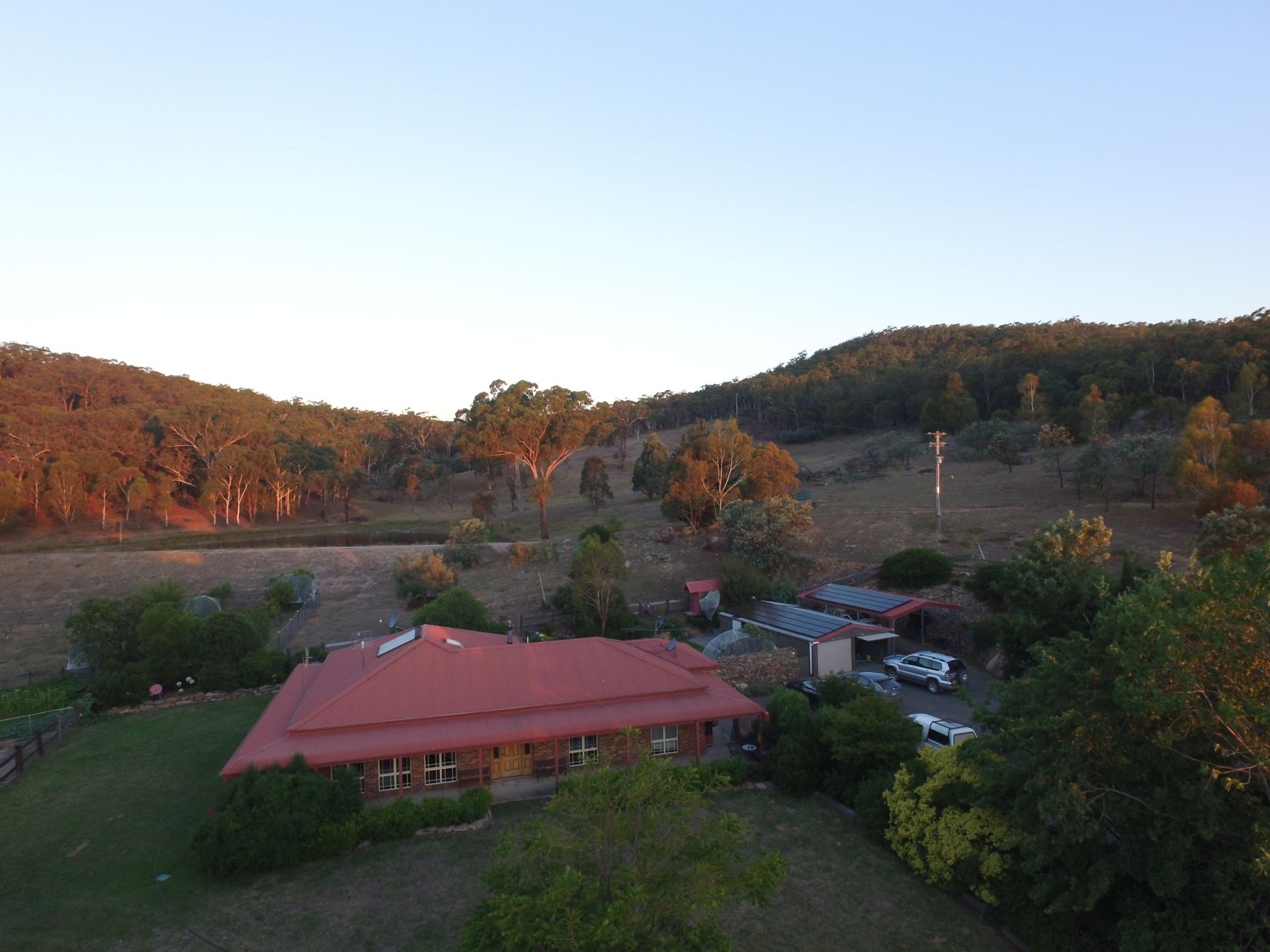 There is cleared land on all sides of the house and house paddock for children and pets to play. The gardens are super low maintenance.The house paddock has 40mm water pipe buried around the house that has metal fittings to the hoses, which is supplied by the dam pump. this system also waters the garden beds and lawn with an in ground sprinkler system. Water to this system can also be supplied by the additional fire pump. Fresh water to the house is supplied by a house pump located on the water tank.