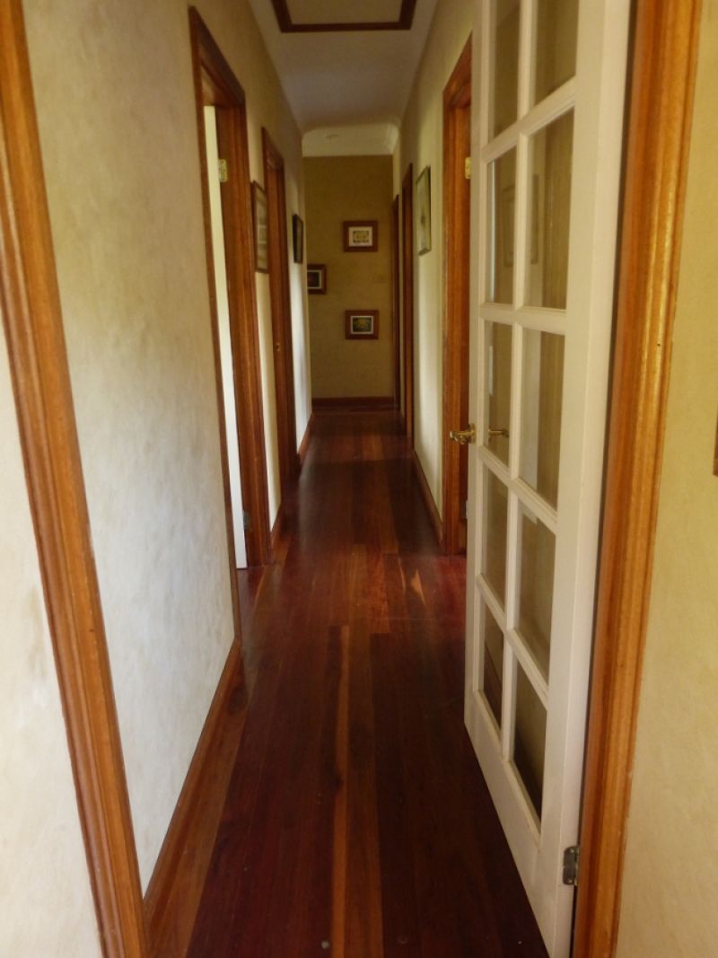 Flooring throughout the house is 19 mm, freshly sealed, solid iron bark, and the bathrooms and laundry areas are tiled with high quality tiles. Ceiling height is 9 feet.