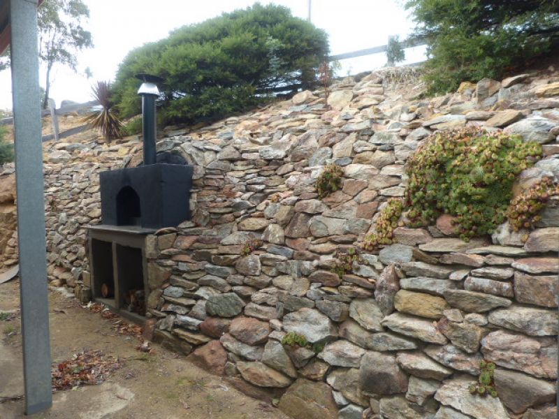 There is a four car garage and an additional four car, 2.7 m high, carport. Along side the carport is a custom designed 10m long genuine rock wall with a truly huge (think the size of a double bed), built-in wood/pizza oven, that is built into the side of the house paddock hill. This impressive, and very popular with guests, feature took a year to build.