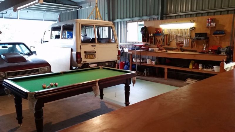 The shed is very large, with a bar, power, mezanine floor, plenty of shelving, and sewerage set up ready for bathroom installation (great mancave/workshop set up). There is a small fenced yard for the pets ,the pool fencing is removable for ease of mowing or side access. There is a large birdcage/chicken coop, an outdoor spa in the entertainment area and swings which are attached the house. The upstairs verandah provides farm, ocean and beautiful sunset views.
