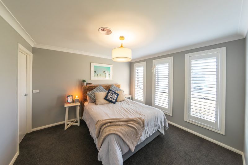 - Timber shutters in the master bedroom, blockout blinds throughout, dual blinds in the living area