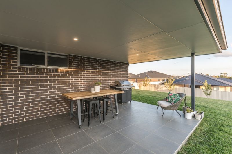 - Sliding stacking doors from the living area opening onto a tiled alfresco area that overlooks Bathurst and Mount Panorama