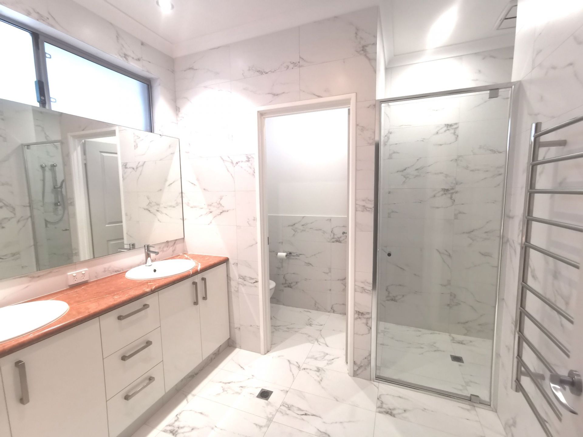 • King-size master Bedroom with ensuite and walk-in wardrobe. Ensuite has dual basins, a granite benchtop, and heated towel rail