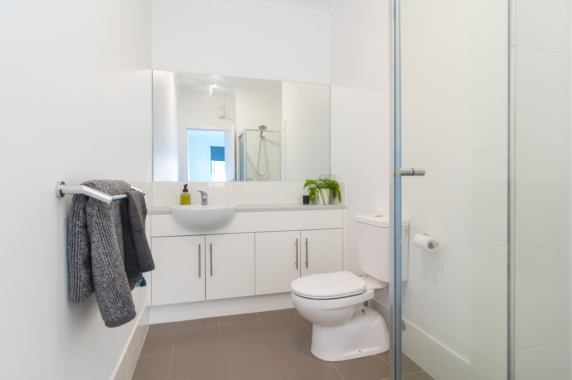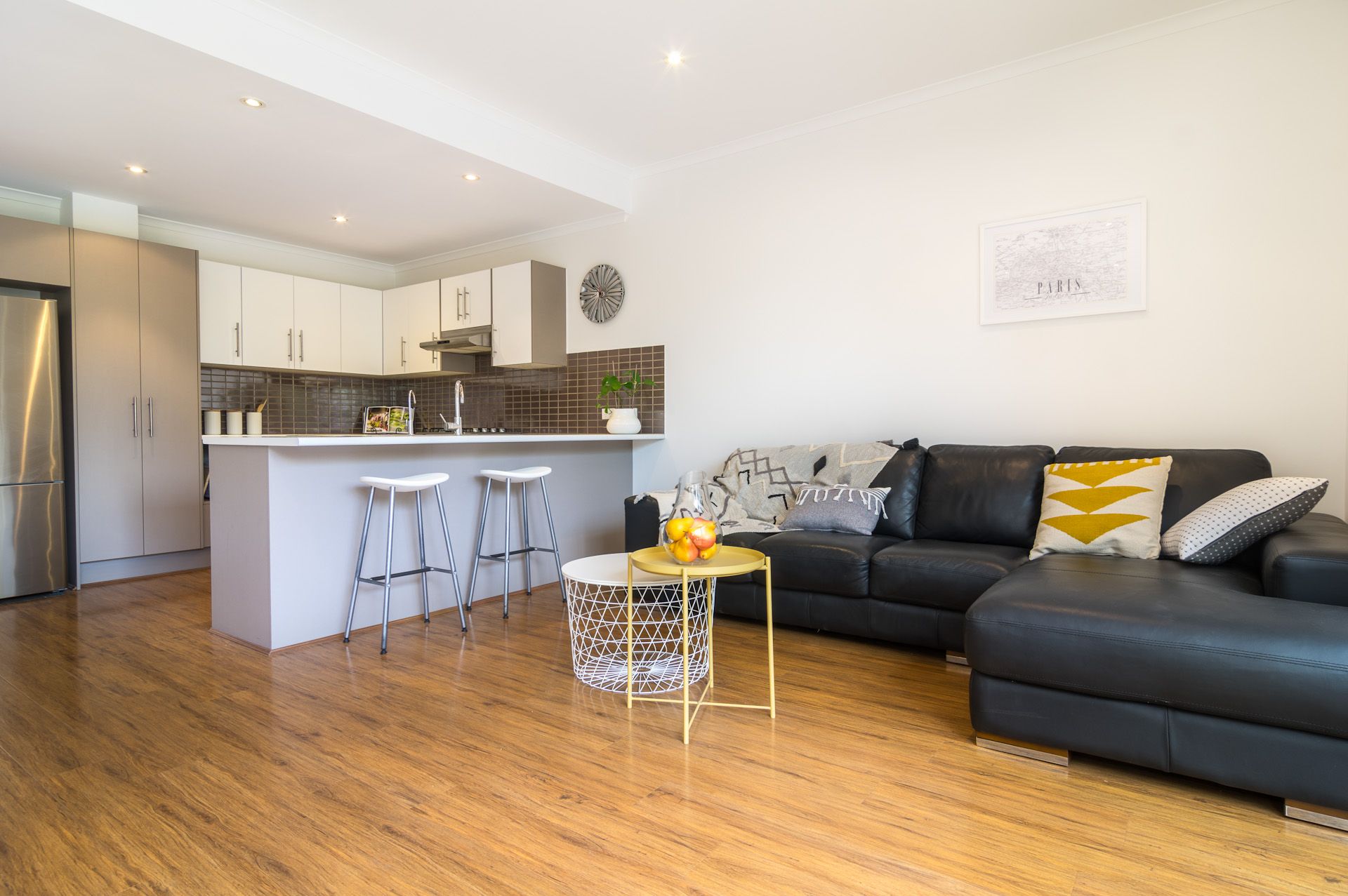 The kitchen is modern with 2 toned doors. Great storage space, water filter, stainless steel appliances with gas hotplates, under bench oven, range-hood and dishwasher.