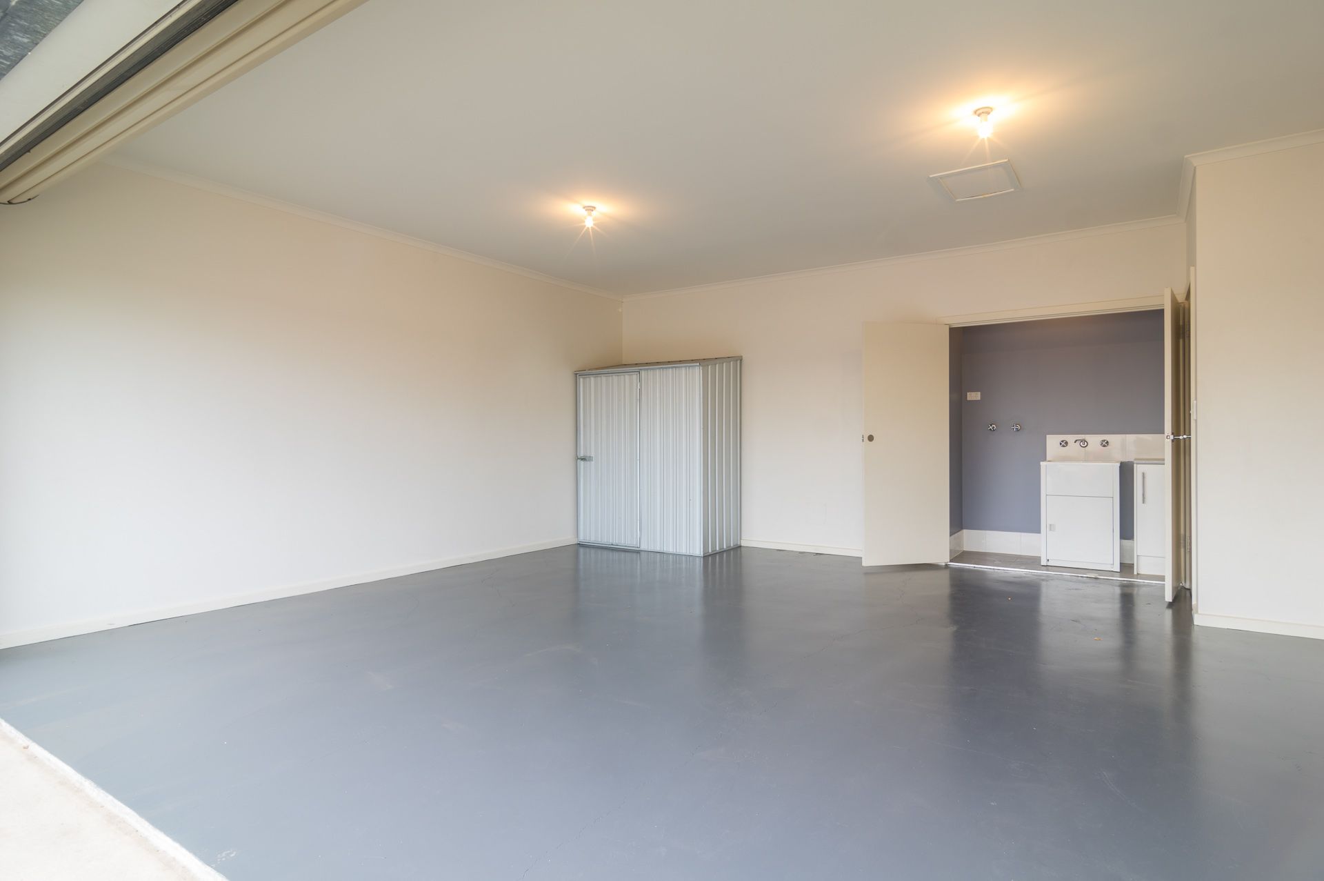 The hallway boasts access to a large double garage (5.7 x 5.7) professionally painted concrete floor and shed. It also includes a cleverly designed laundry nook.