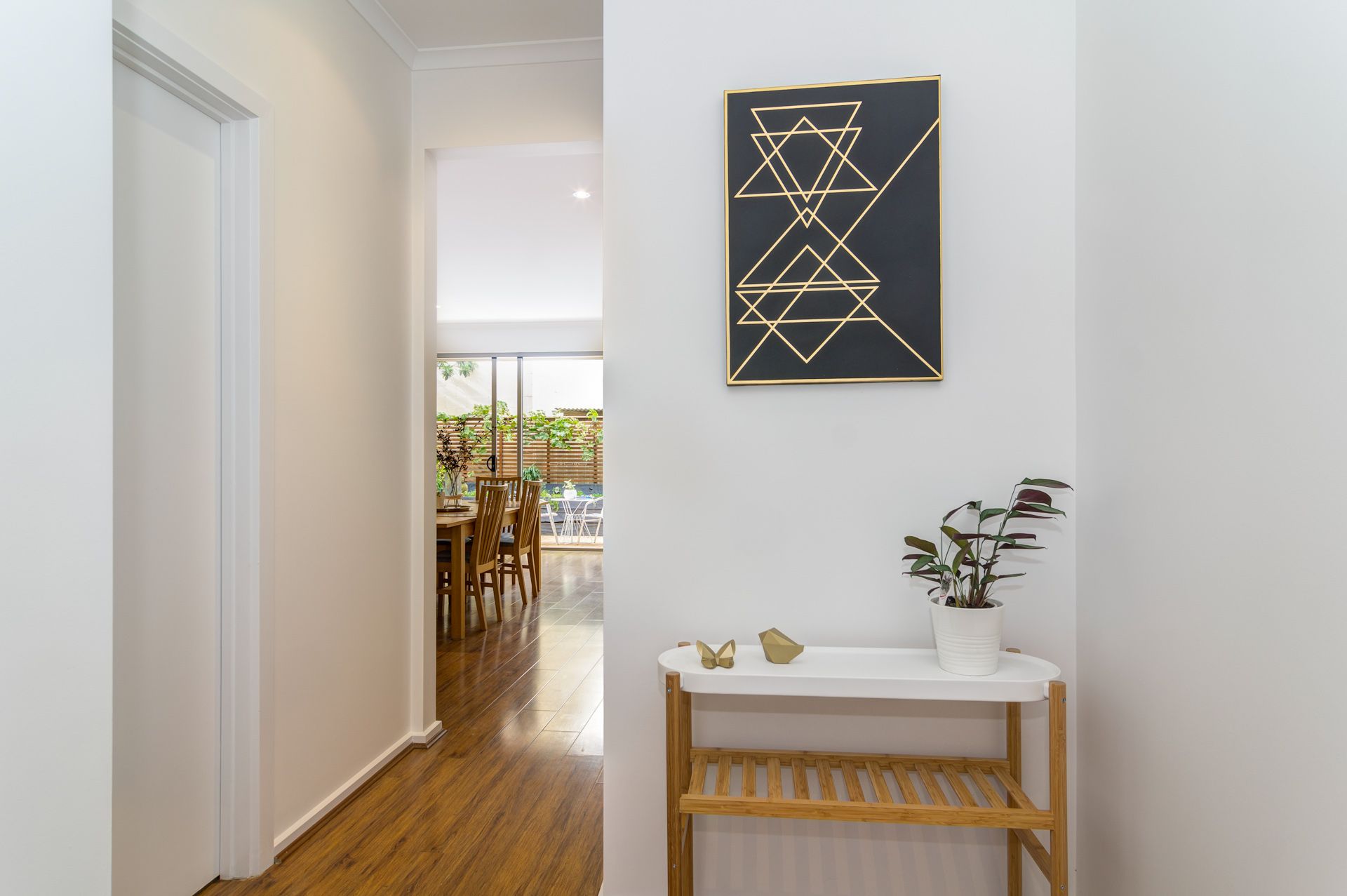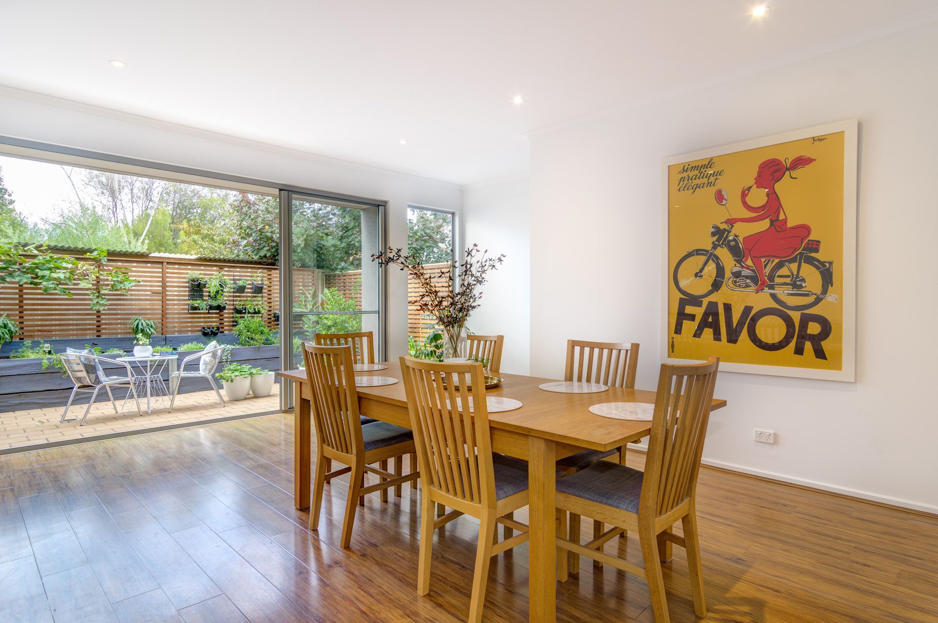 As soon as you walk into this property past the hallway into the open plan living/dining/kitchen you are met by the stunning outdoor entertaining area. Green leafy plants, herbs and fruit trees meet the eye in attractive garden beds.