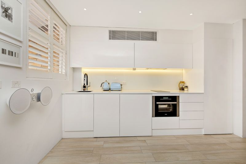 The recently renovated kitchen has extra large benchtops with plenty of cooking space and includes a steamer oven for the health conscious. The kitchen comes complete with a hidden dishwasher and Bosch washer / dryer combo.