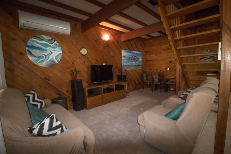 Chalet style home with beautiful views looking over the distant mountains and gumtrees. This house has that country feel with Cypress wooden walls features throughout the home including exposed beams and high ceilings. All bedrooms are large with main bedroom and bathroom down stairs and 2 bedrooms upstairs.