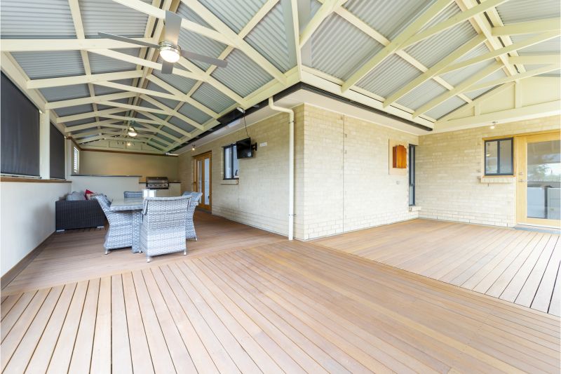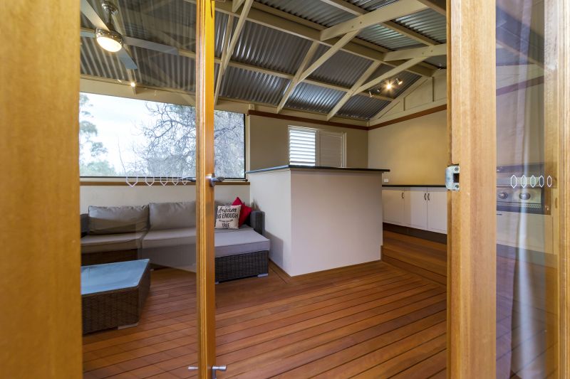 - French doors open onto a spacious decked entertaining area which is enclosed with quality outdoor ziptrak blinds
