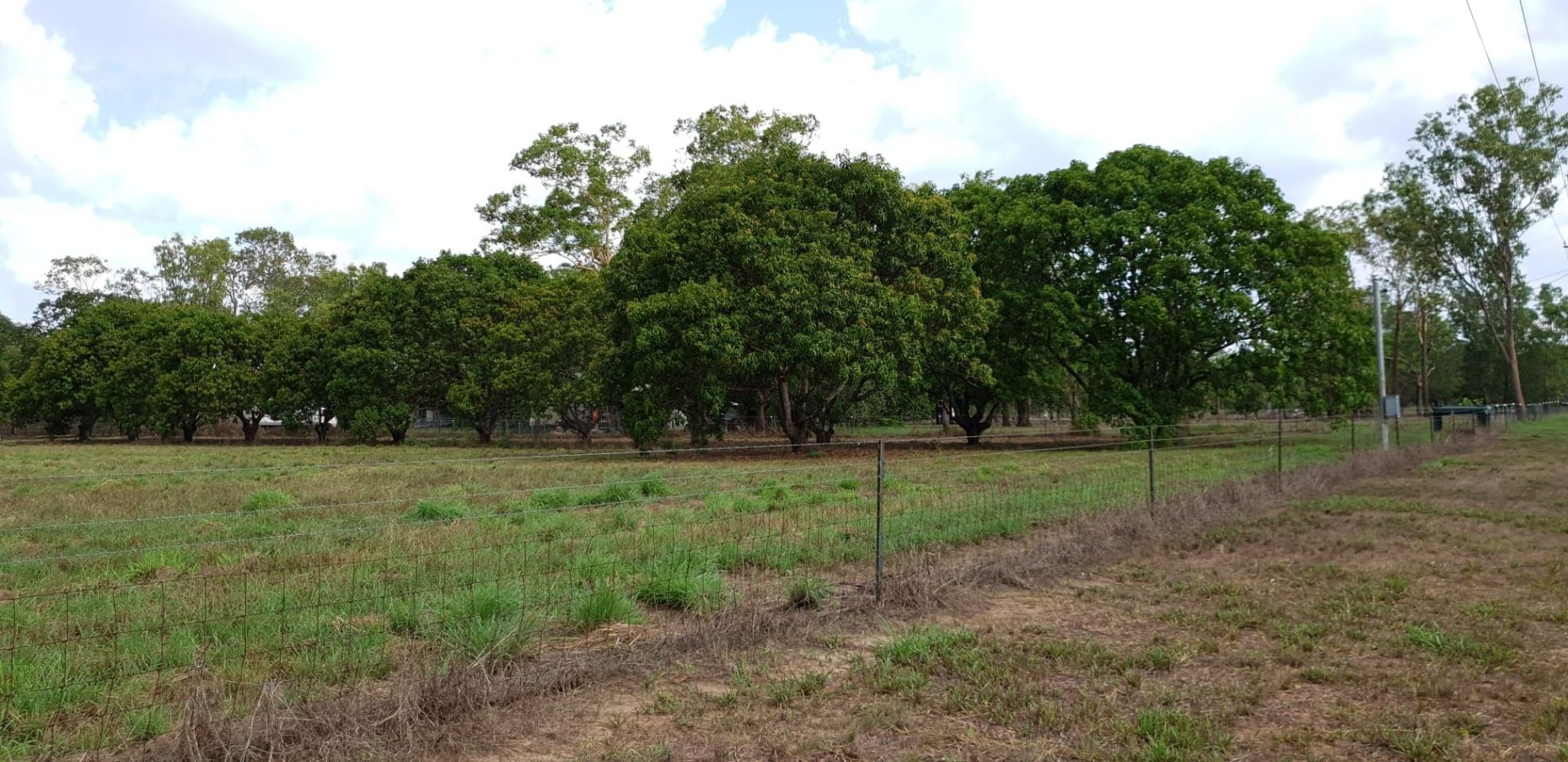 A line of mature Kensington Pride mango trees along one boundary provides quality fruit and shade.