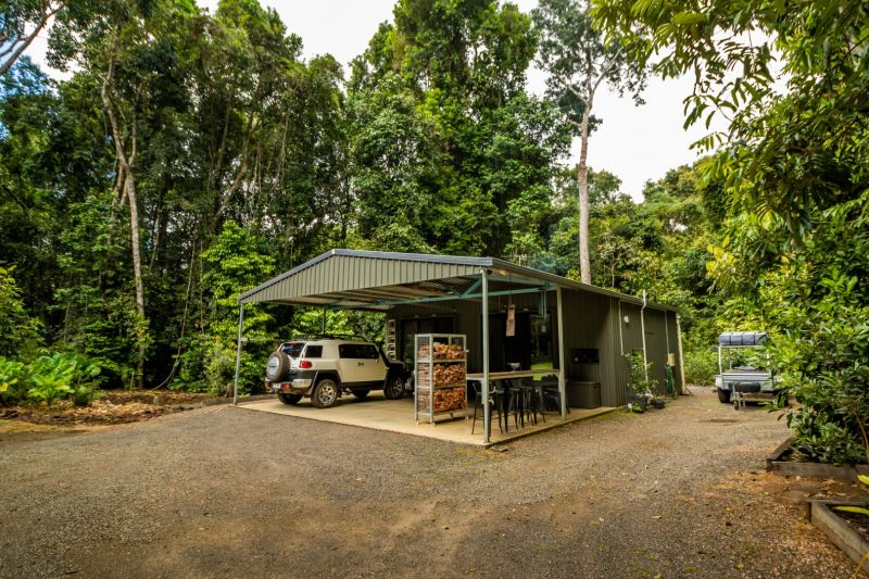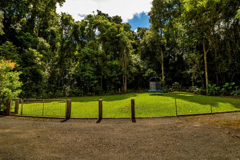 The 2.47 acre block (10010m2) of rainforest with approx 75m North Johnstone River frontage, where all the hard work has already been done. Conveniently located only 4.7km from the township of Malanda, this home is situated at the end of an exclusively private close. Awake daily to the symphony of birds and the sound of the flowing river. While enjoying the native birdlife, pademelons and tree kangaroos, admire the beautiful trees and their enormous buttress roots of your very own enchanting forest. Choose to take a swim in the waterhole, without the maintenance and costs of a swimming pool or.. drop a line and catch a fish for dinner.. its your choice..