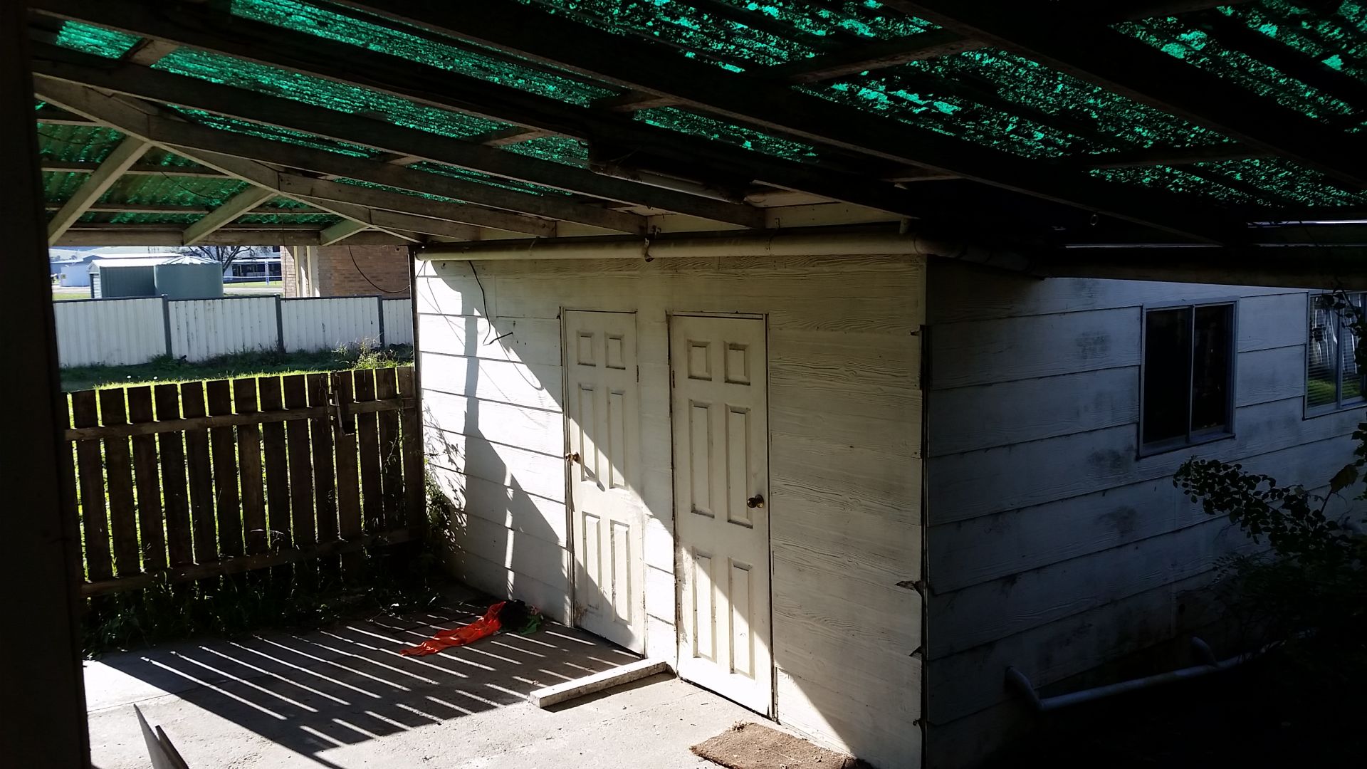 Gutter on eastern shed (north side).