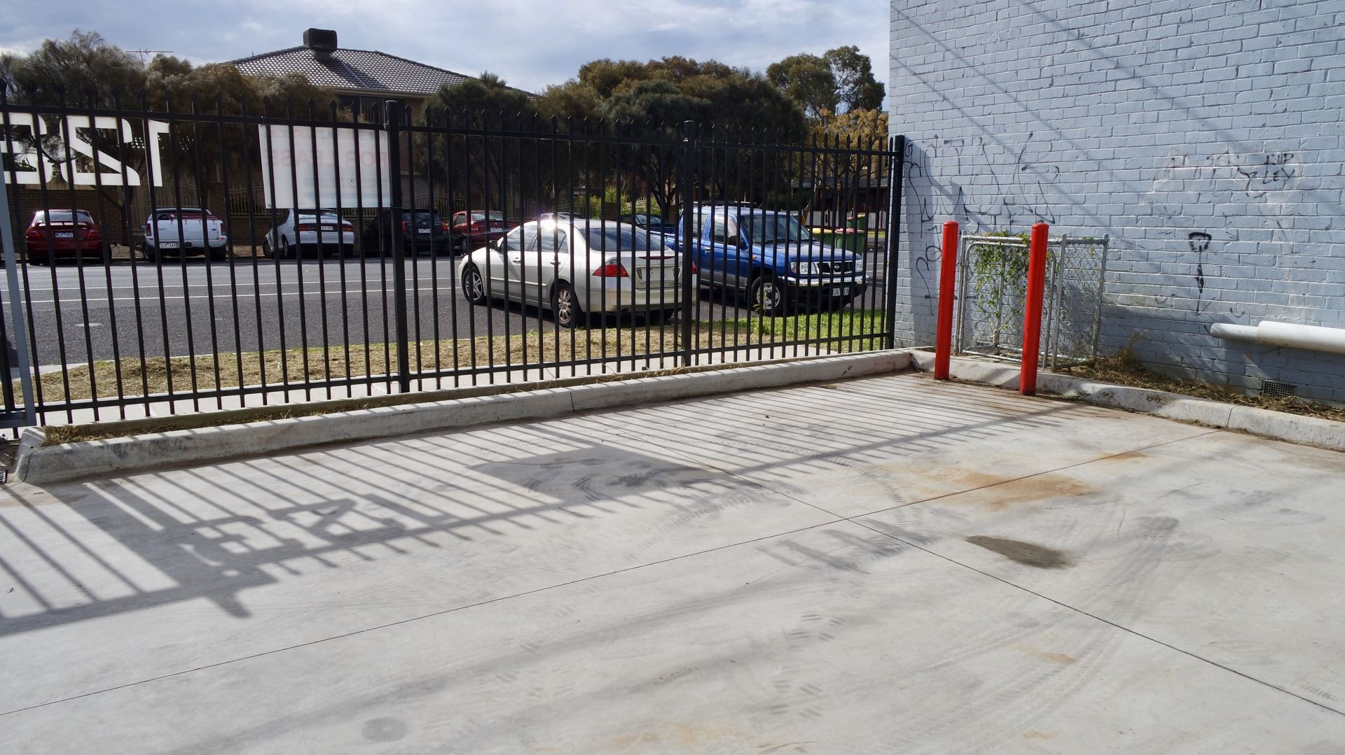 This factory has high ceilings, fencing, a securely lockable front yard and security gated entry to park cars.