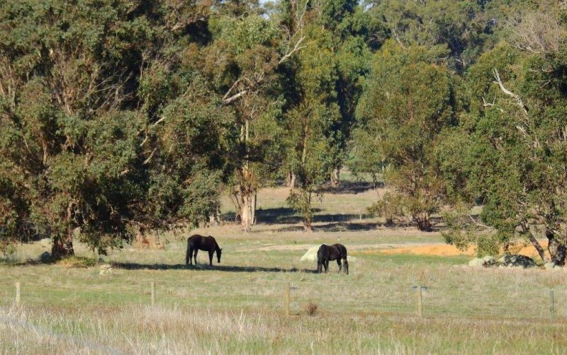 A small stand of blue gums in the south east corner has become a favourite location for the resident horses to shelter from weather. One year plantings of mixed natives (fenced off from livestock) on the east and north boundary will reap an abundance of flowers and foliage sure to entice the bird life further whilst affording protection and privacy from the awesome neighbours on surrounding properties. There is 3 sided shelter for horses or other stock and some star picket and electric tape fencing exists, which could be easily removed or relocated to suit ones needs.