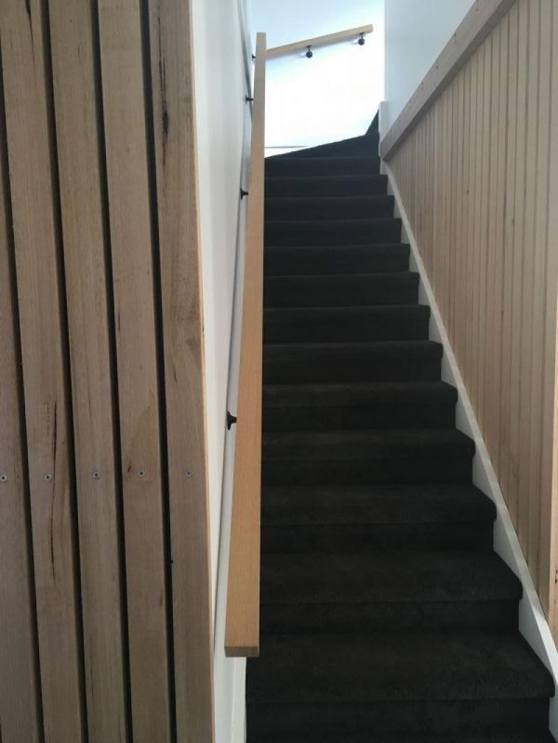 Luxurious bathrooms define this home that feature under tile heating, heated towel rails, frameless shower screens, double shower with concrete benchtops equipped with matte black cabinetry with glass basins and Australian hardwood timber roofing and glass splashbacks.