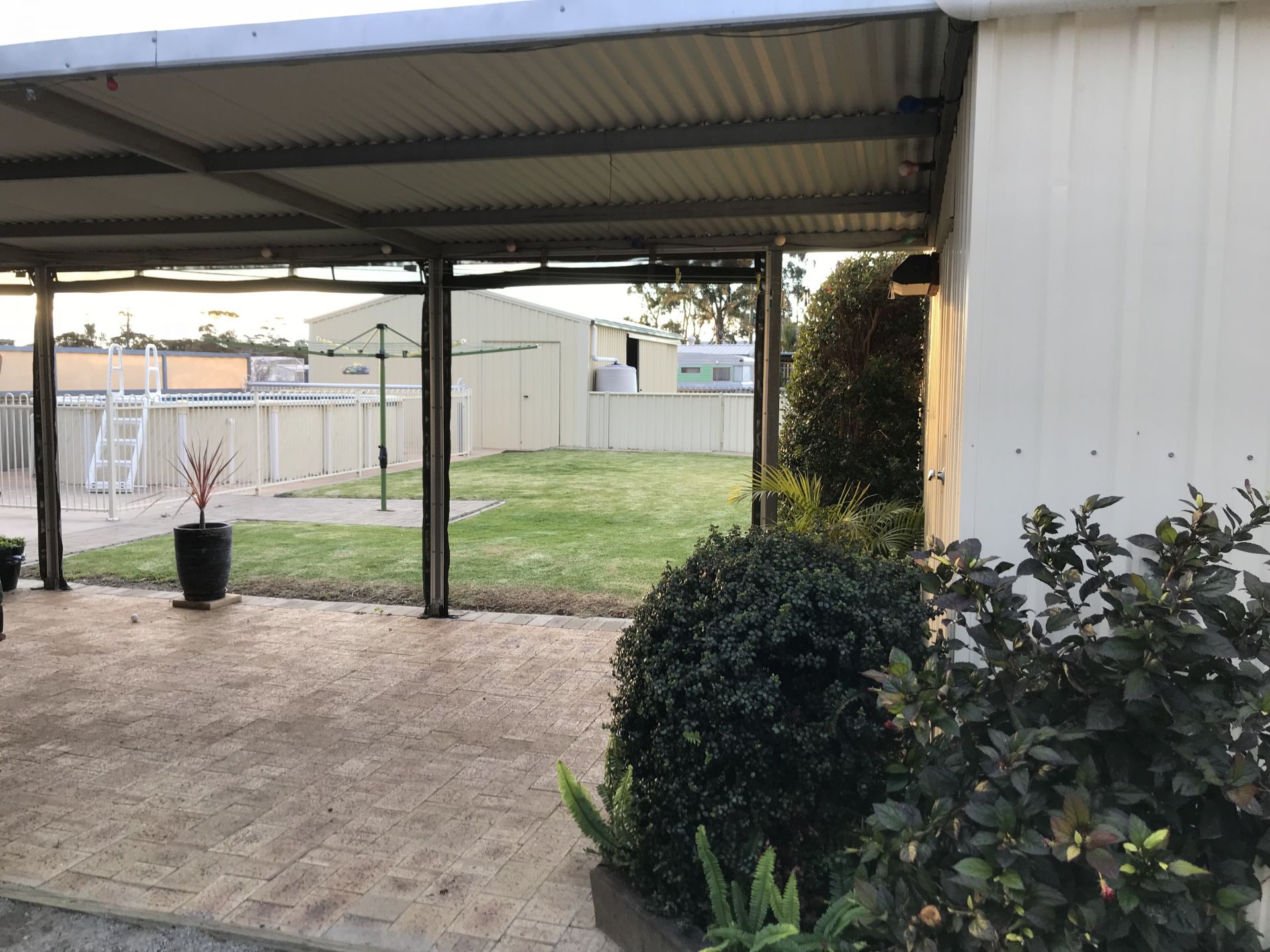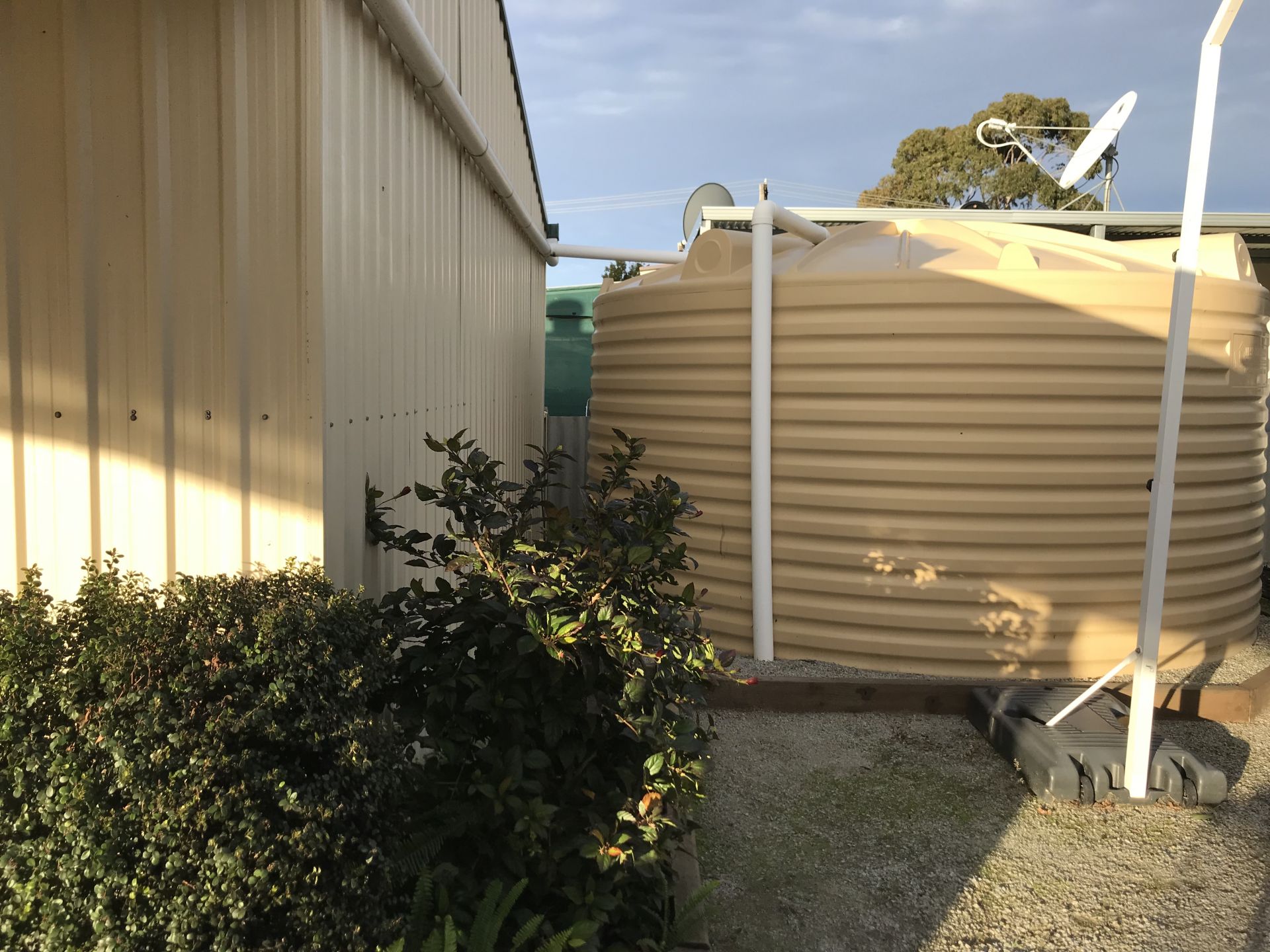 A 26,000lt water tank situated in the back yard will keep the pool topped up in summer and keep the water bill down. A cold water tap is also in the kitchen for you to enjoy refreshing rainwater straight from the tap. Another smaller water tank is situated outside the yard to catch the overflow off the 2nd of the 2 colourbond sheds.