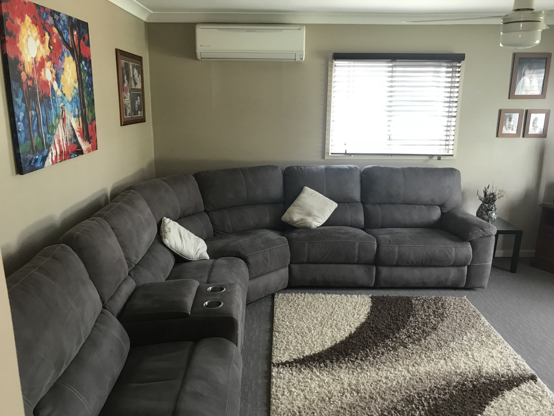 The sunken lounge is where you will find a split system airconditioning unit and a lovely tile file for when the winter chills set in, there are also ceiling fans in each room to circulate the cool night air in the summer.