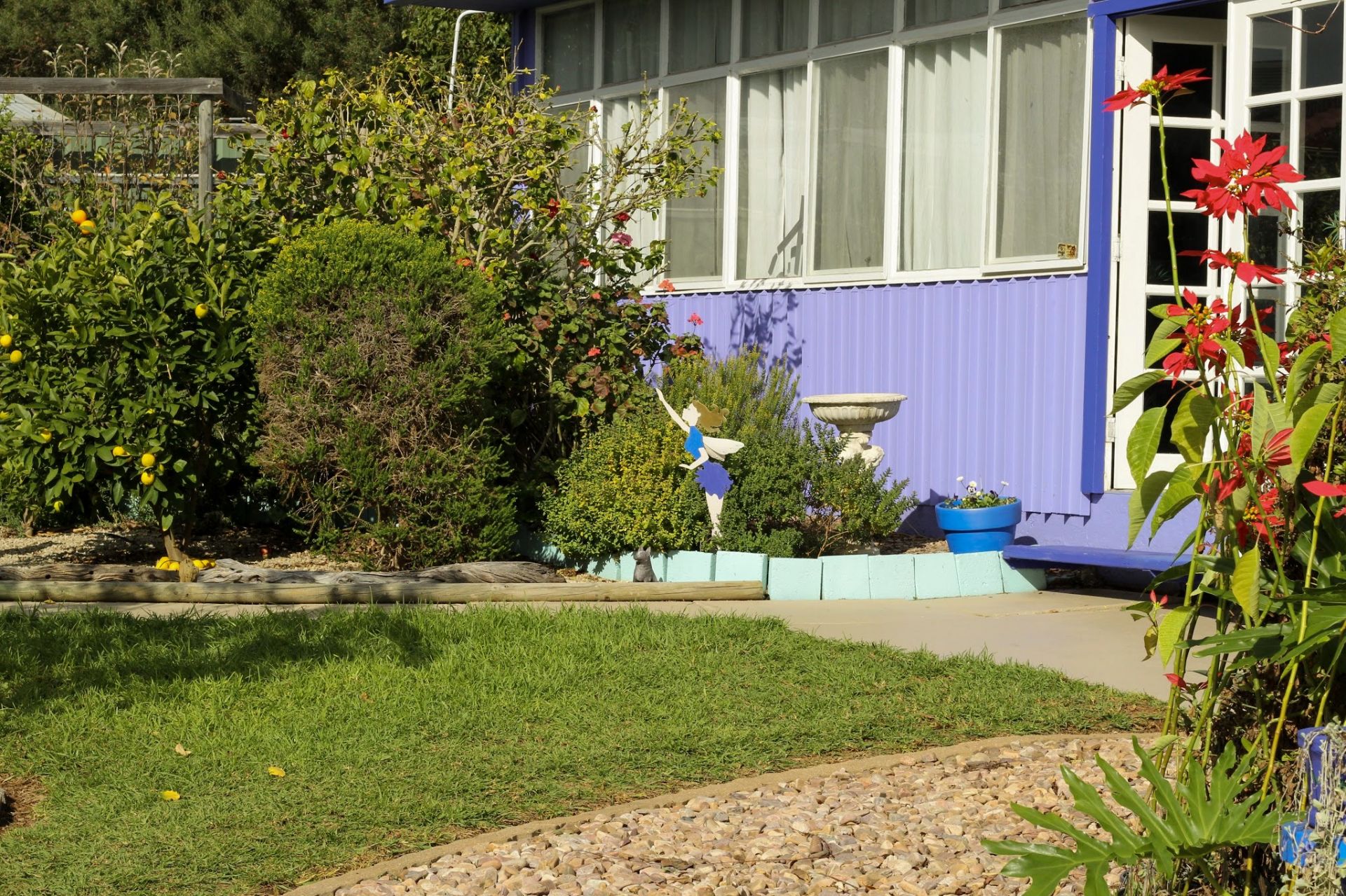 This spacious allotment also contains a huge rumpus room, large beer garden area, 7m x 6m garage, large vege patch and a carport for 2 cars but parking for up to 6 cars or a boat and trailer! Take a seat behind the garage in the secluded zone and you can catch a glimpse of the sea in the distance. Paved areas front and back to sit and have a glass of wine or cup of tea. Surround all this with mature gardens including apple, orange, lime, apricot and mandarin trees and a huge variety of bushes and flowers and it really is a nature retreat with plenty of bird life.