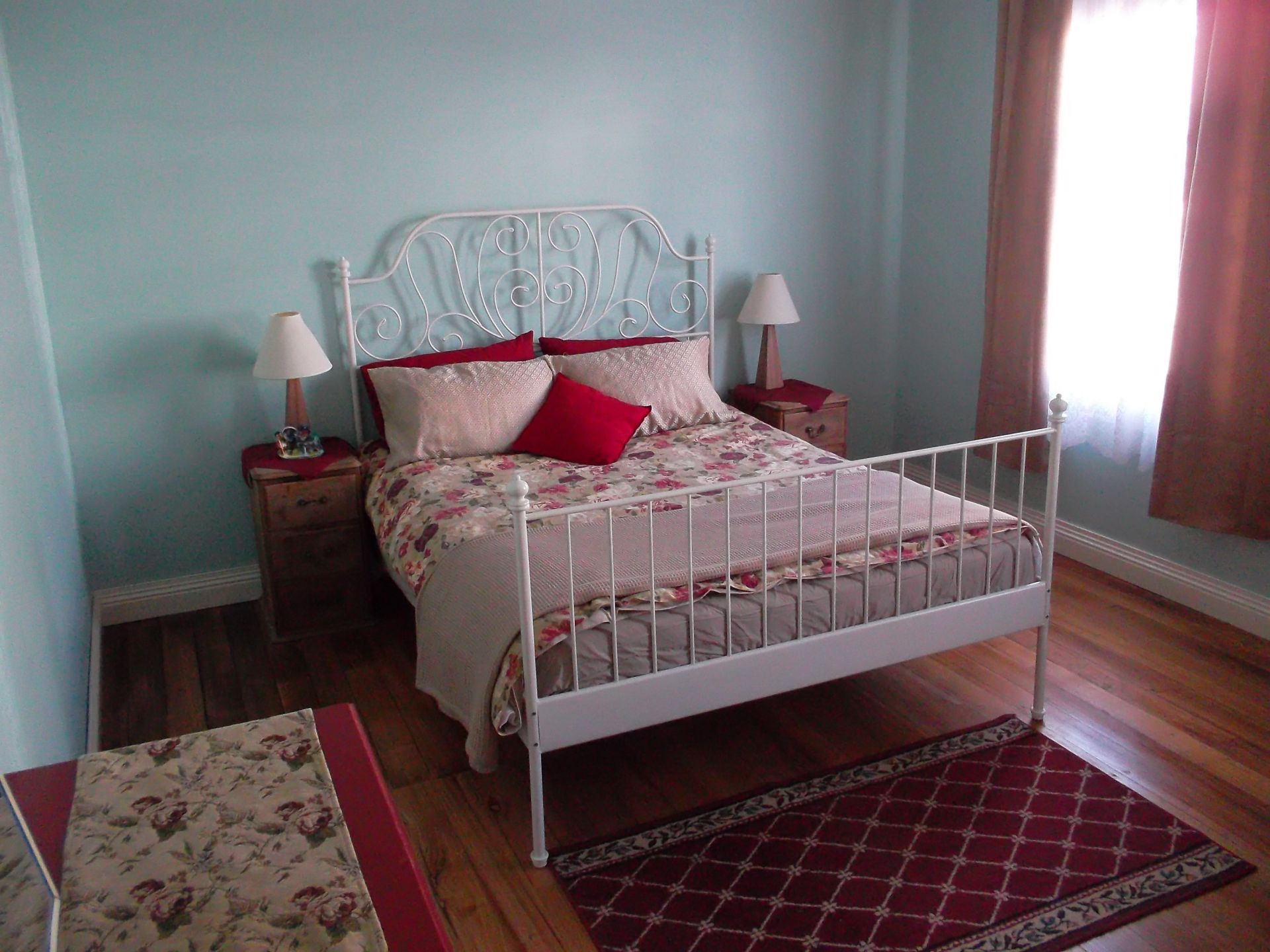 ---north-facing garden with roses, raspberries, rhubarb, etc.