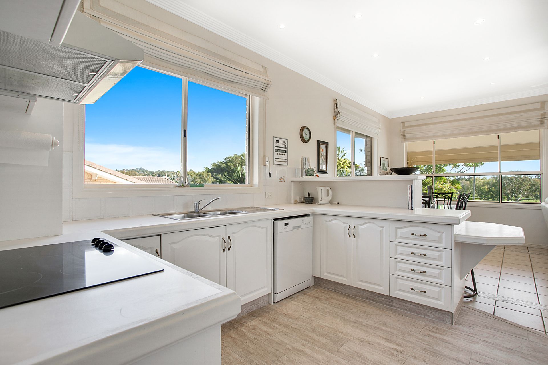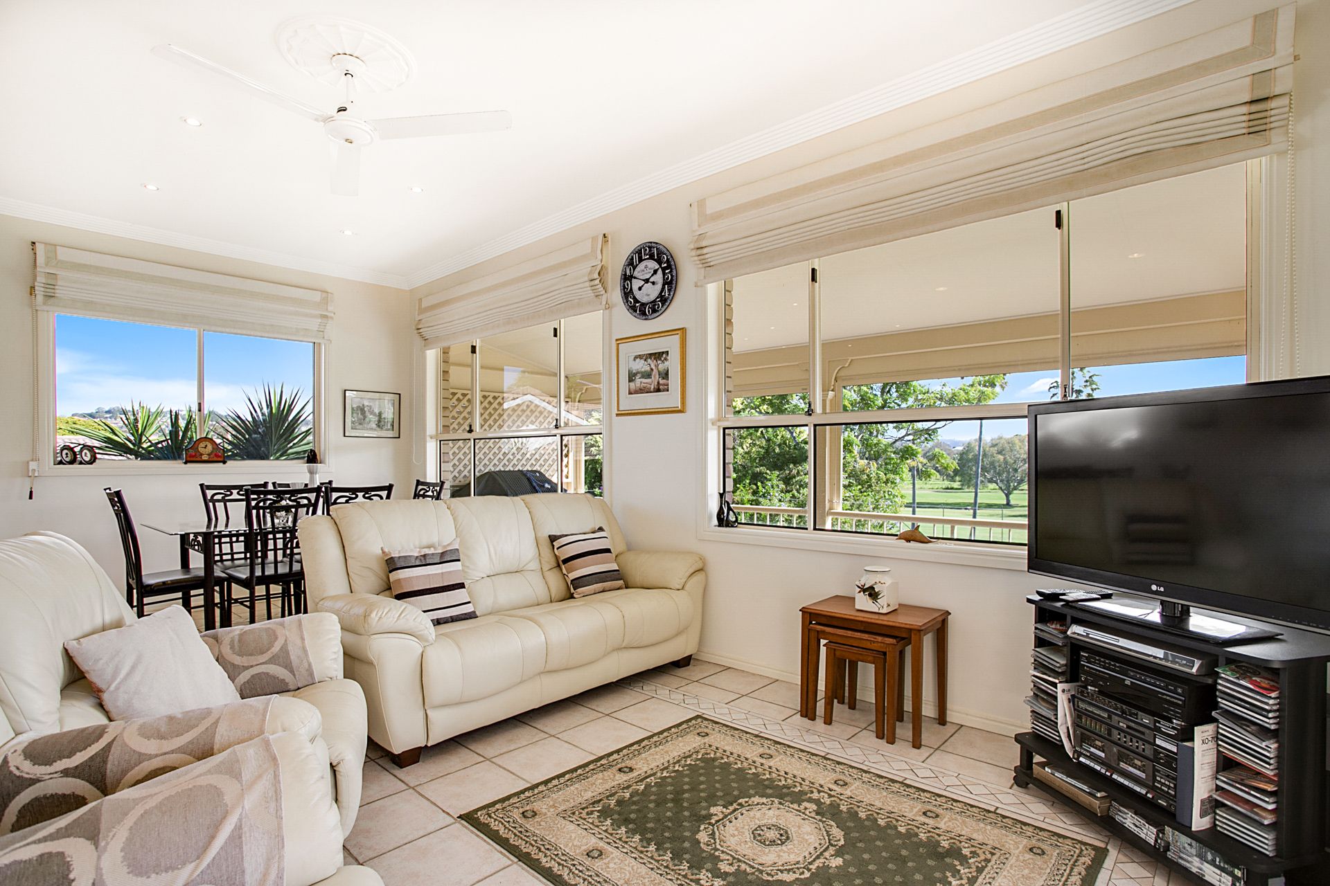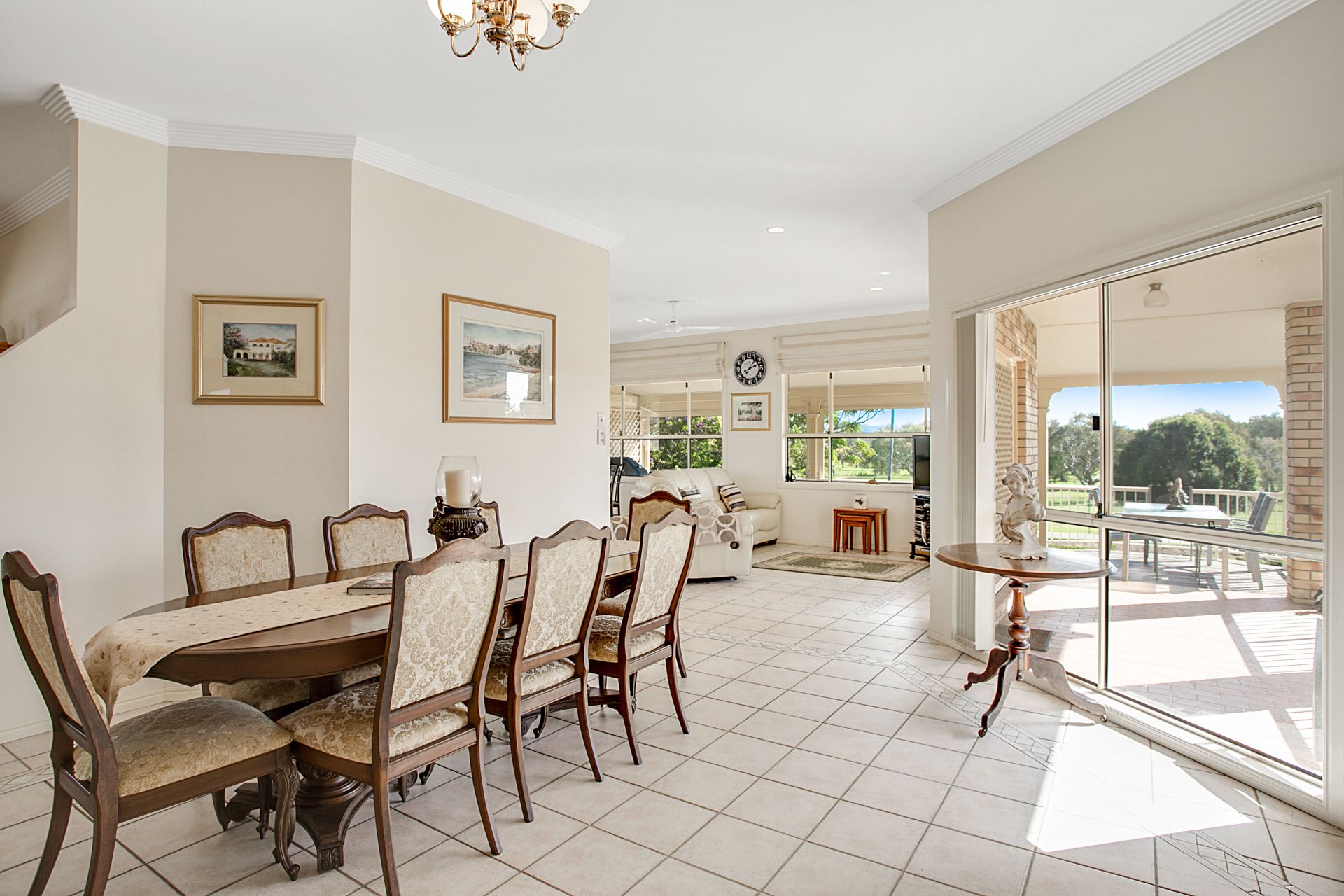 The refined, yet comfortable living spaces adjoin the kitchen. Open-plan and spacious, you can entertain friends in the formal dining area or gather the family together in the living room. There is also a casual dining space where you can start your day with a cuppa in hand while you take in views over the golf course.
