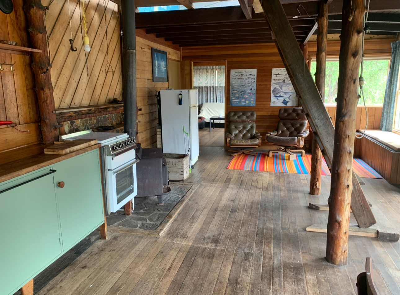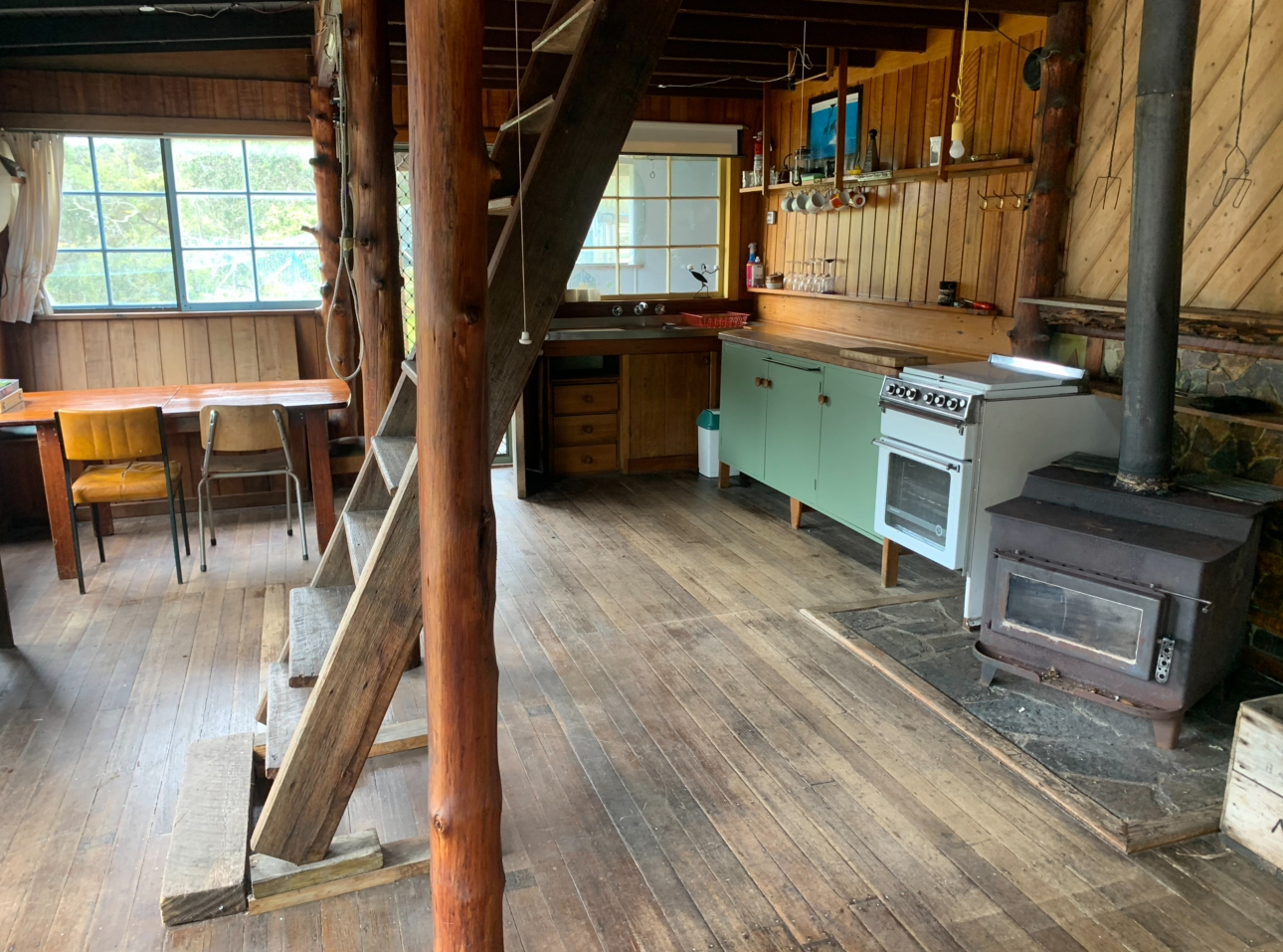 Charming 4-bedroom timber-clad log cabin, fully off-grid with water tank and pot-belly stove