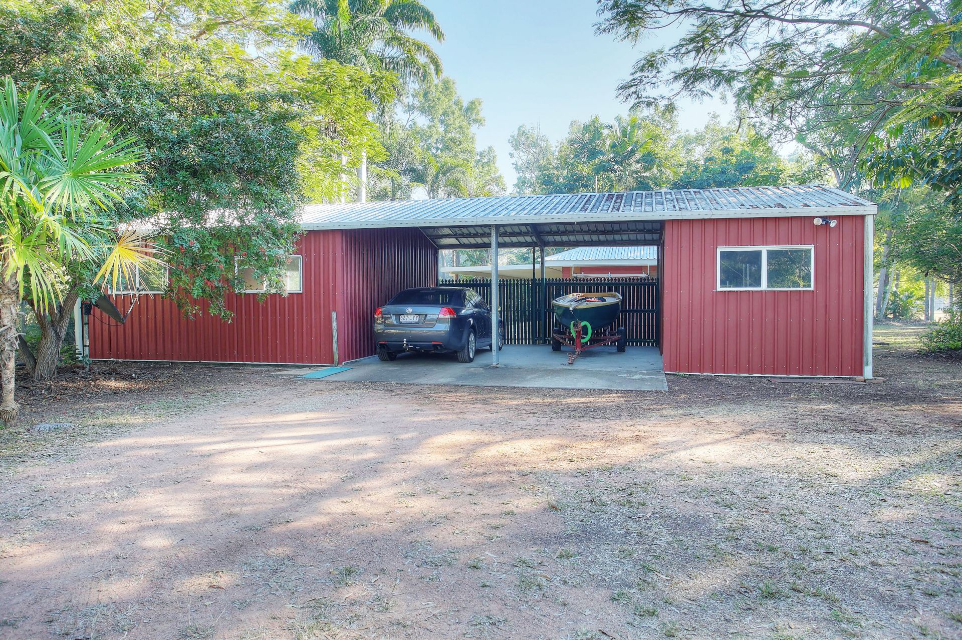 - 6mx6m 2 bay carport; 3mx6m storage/shed; 6mx6m large fully lined and airconditioned shed - all under the same roof
