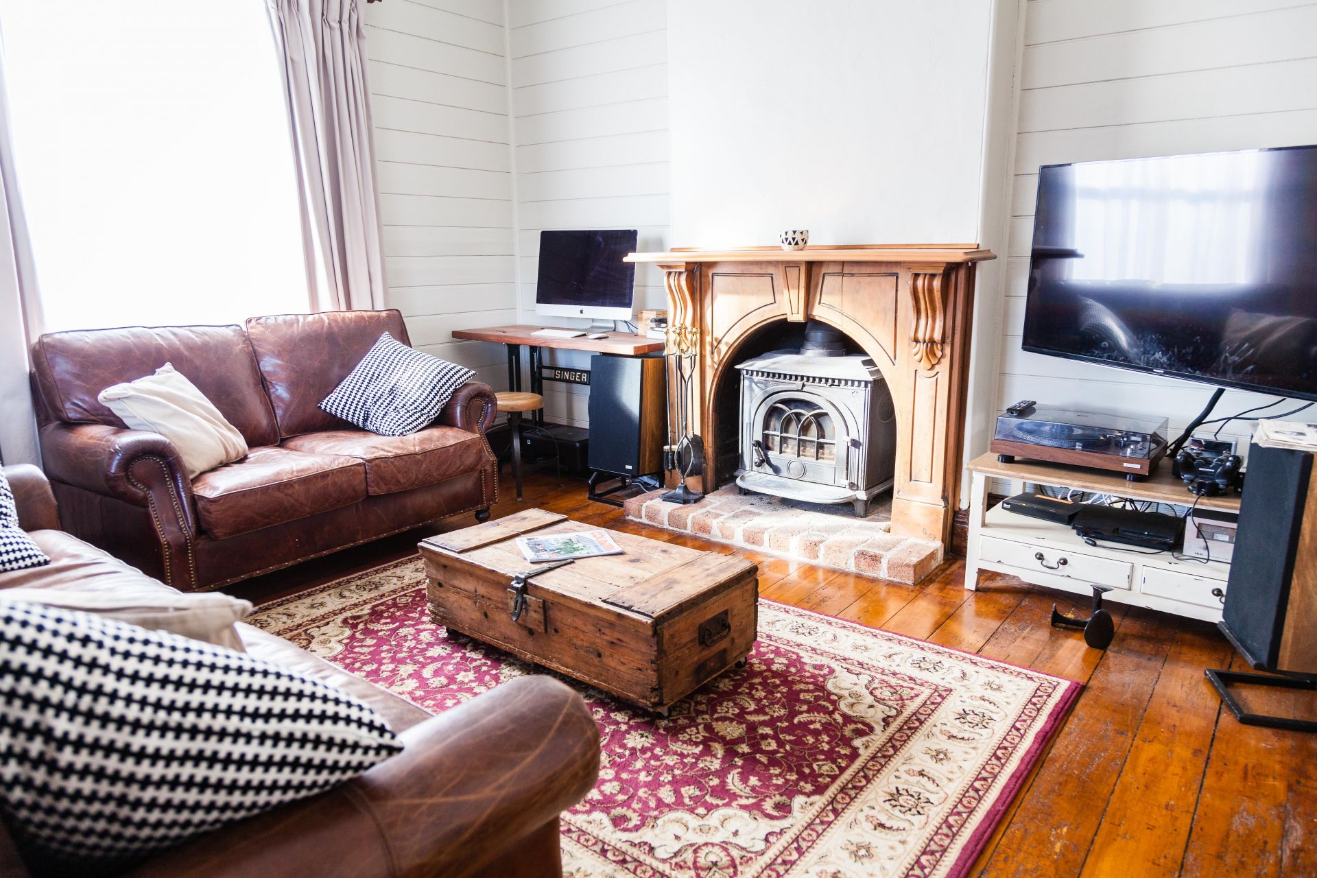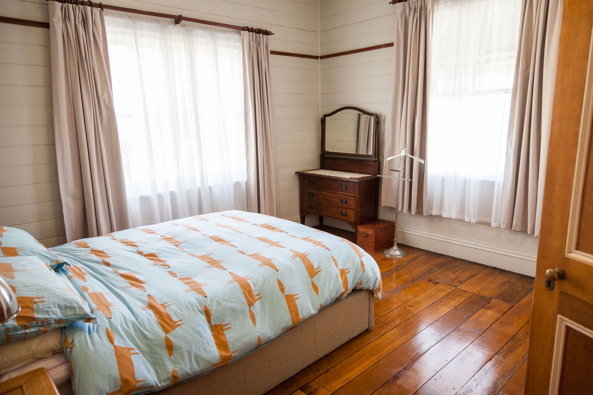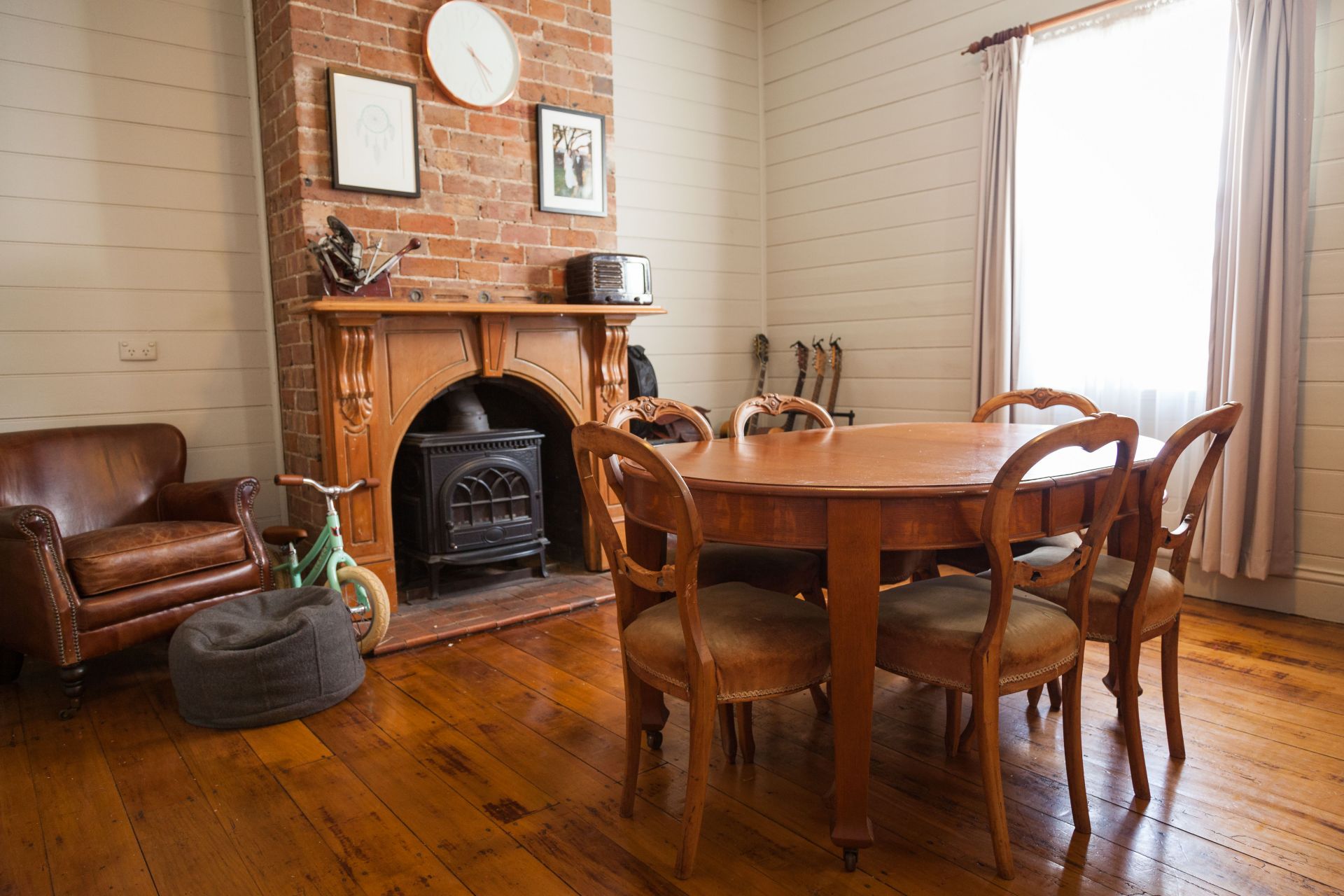 The home features large bedrooms with built-in robes in two of the rooms, three meter high (10ft) ceilings, two functioning "Jotel" slow combustion heaters, cedar walls and doors & character filled pine flooring. A period style bathroom with freestanding bath. Split reverse cycle air conditioning. Shady front verandah.