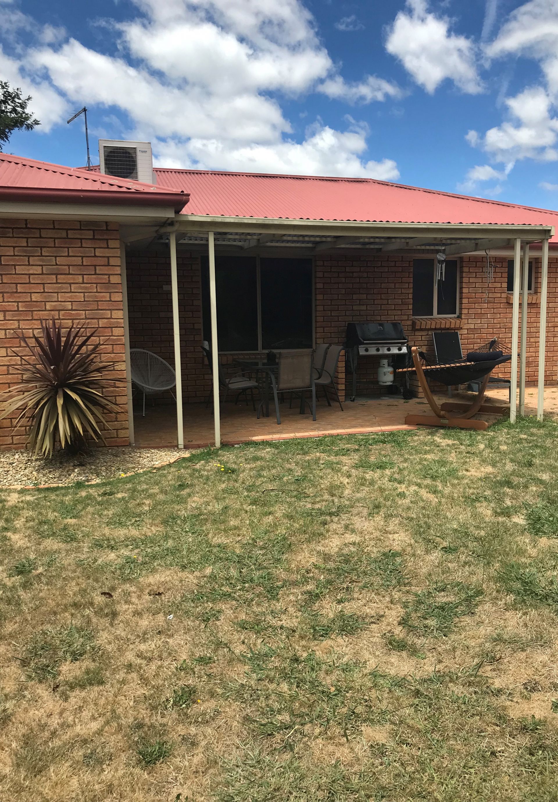 • Sunny, undercover entertainment area.