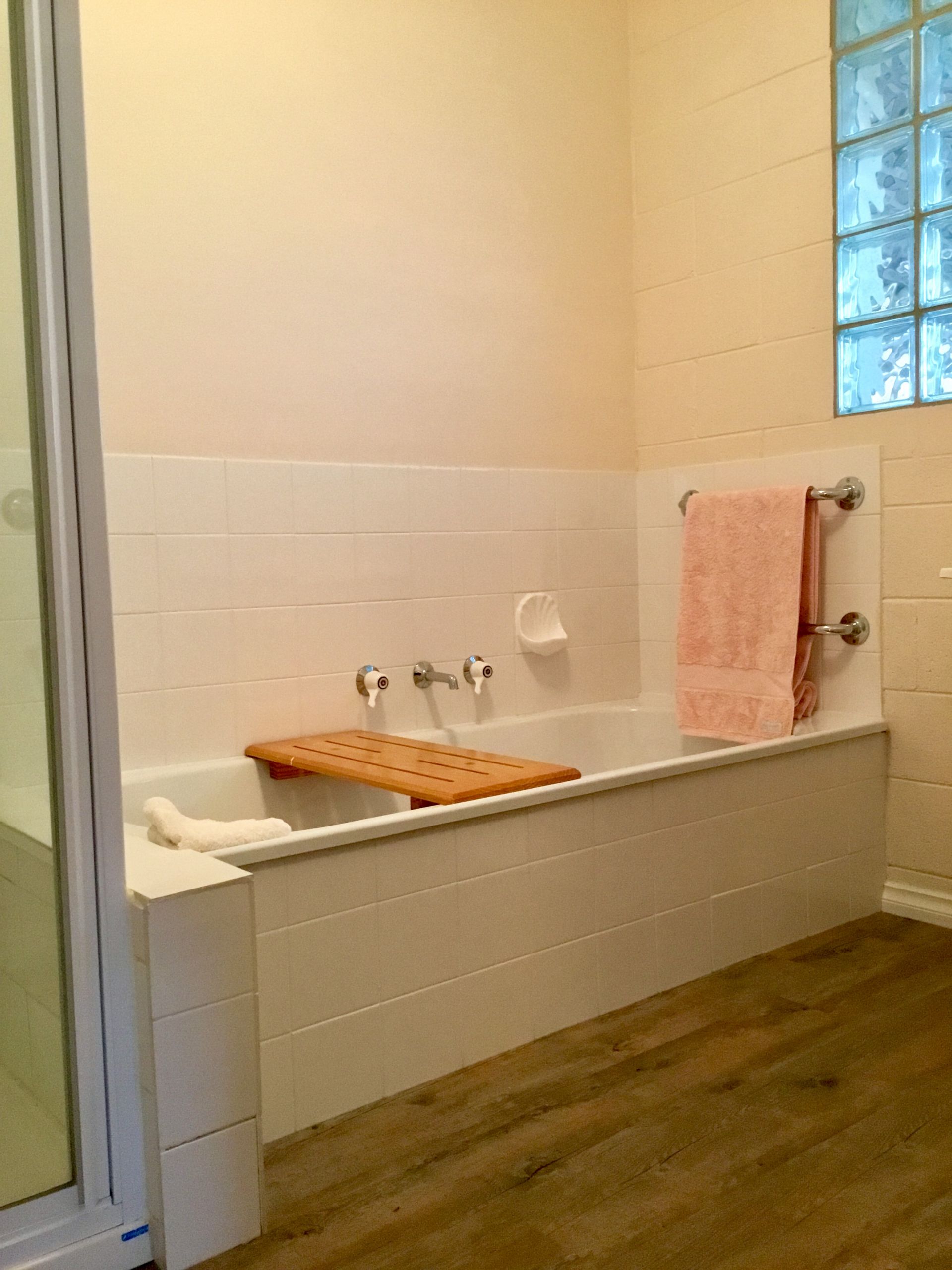 There is a large bathroom 2.6m x 2m boasting big bath and separate shower. The toilet/powder room has been recently updated. Both areas are fitted with safety rails.