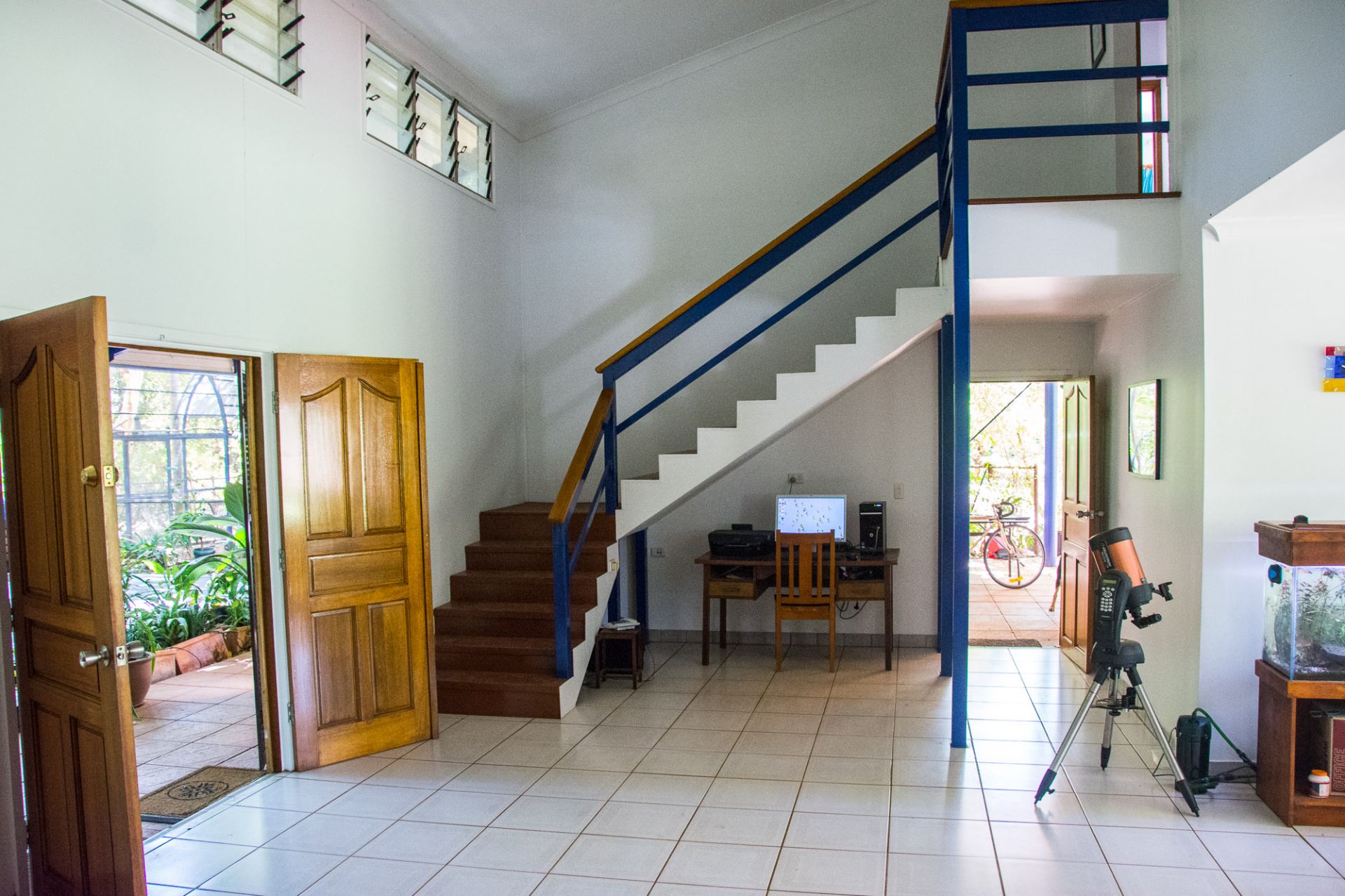 This lovely 2 story home has 4 bedrooms plus an office, a bathroom upstairs and another with a shower downstairs. The kitchen, dining room and the vaulted ceiling living room are downstairs. There are two verandahs upstairs as well as a paved undercover area downstairs. There are external as well as internal stairs.