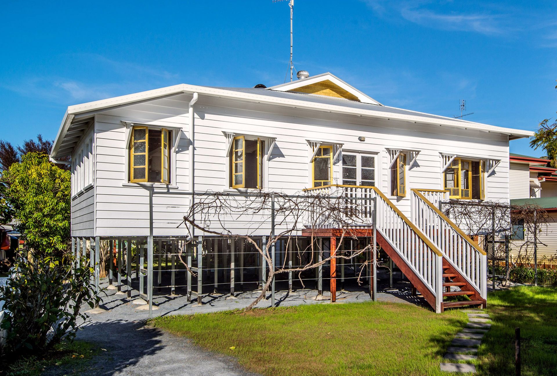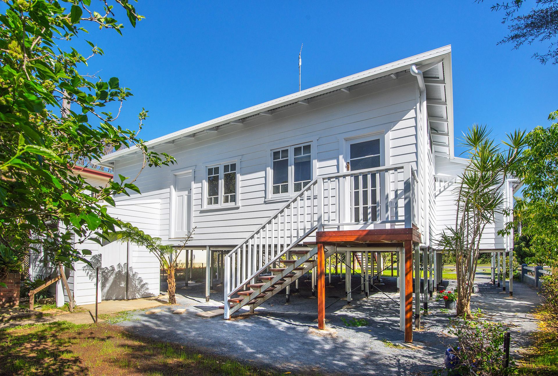 Facing the Brunswick River and Palm Park, this hi-set home is raised above flood height and made from real hardwood. Currently it is stripped back right to its solid hardwood frame and is an opportunity for you to create your own home according to your budget. High ceilings and original timber flooring, the house has a versatile floor plan with three generous size bedrooms and one new bathroom with space for a second en-suite bathroom. The location is perfect with only a 2 minute walk into the center of town with the benefit of riverside walking and cycling tracks just across from the house.