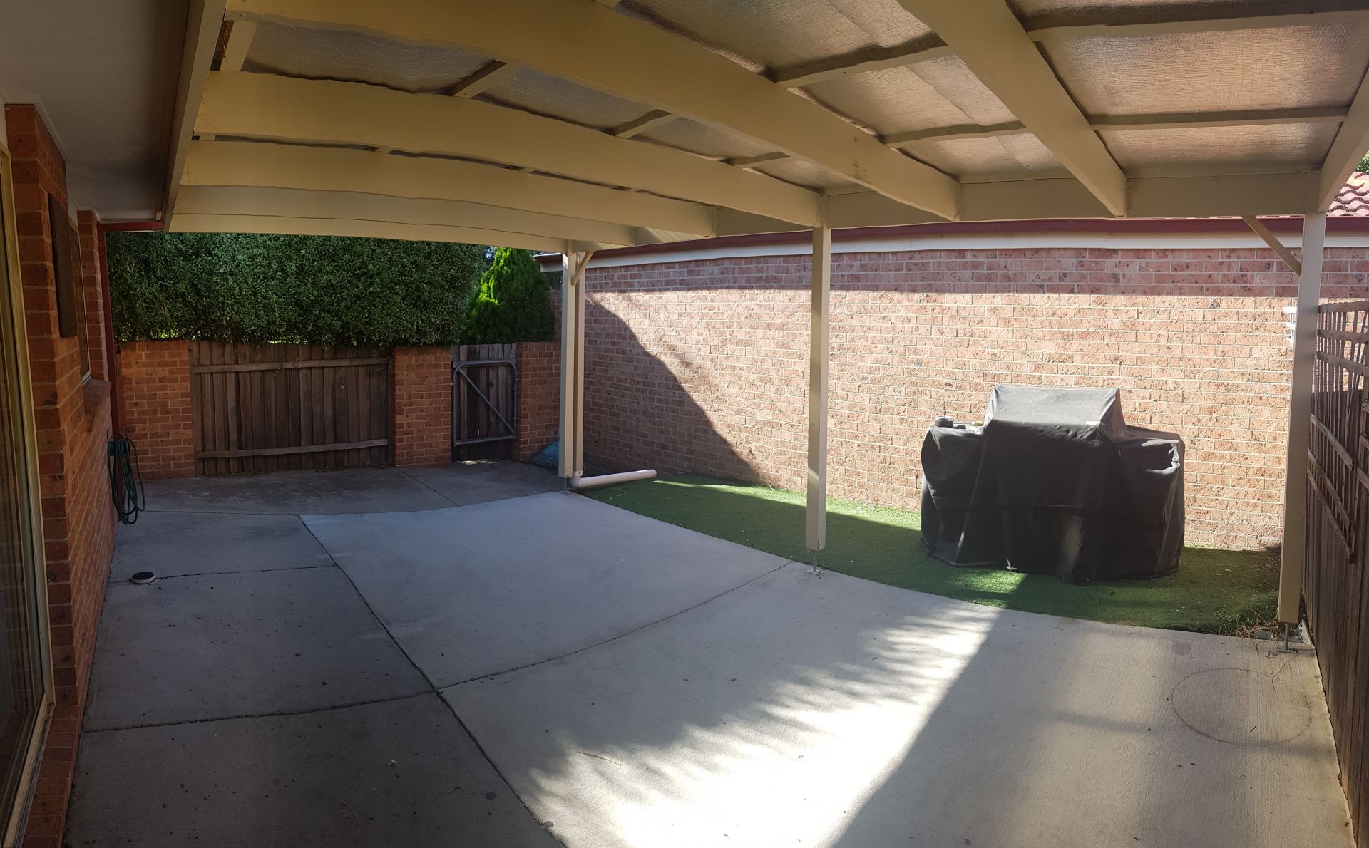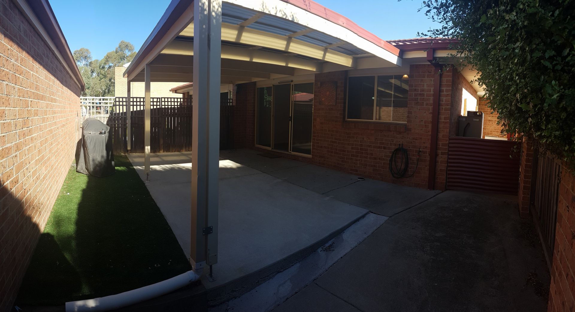 Rear courtyard with covered pergola