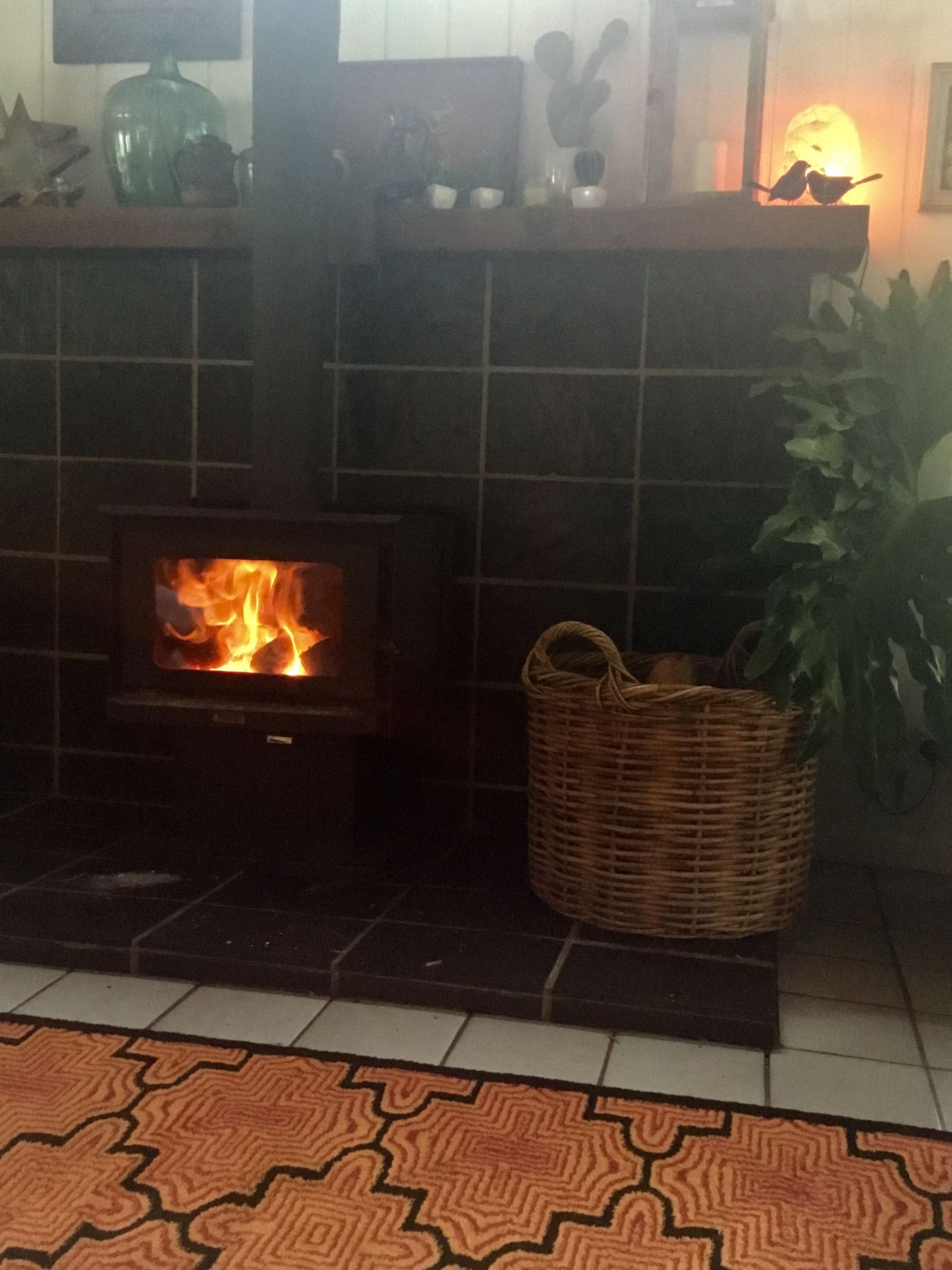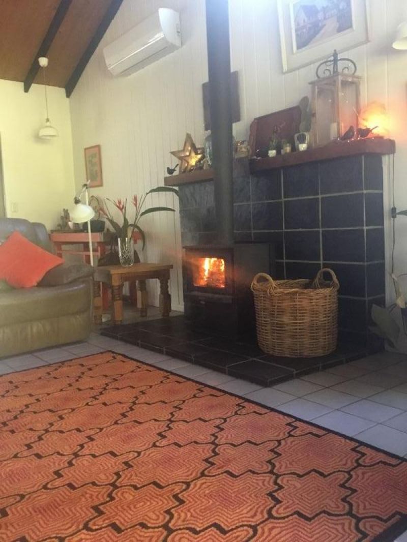 Open plan lounge, dining and kitchen with cathedral ceilings are kept cosy with a wood fire and the added bonus of a split system aircon/heating unit. Cooling is enhanced by ceiling fans in lounge, kitchen and 2 bedrooms.