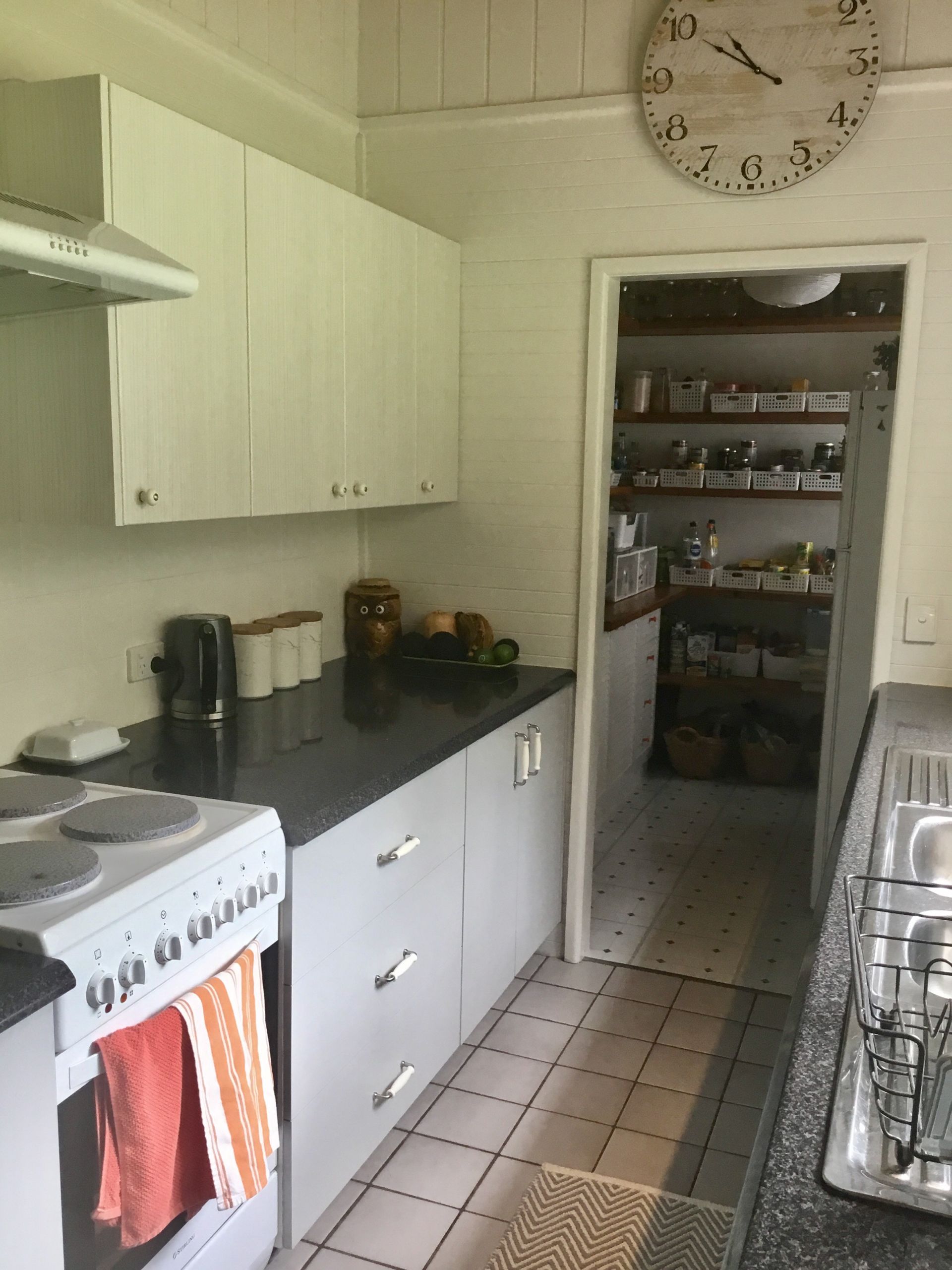 The galley style kitchen includes a large country style, walk in butlers pantry that will delight the chef of the house with its comprehensive shelving and storage.