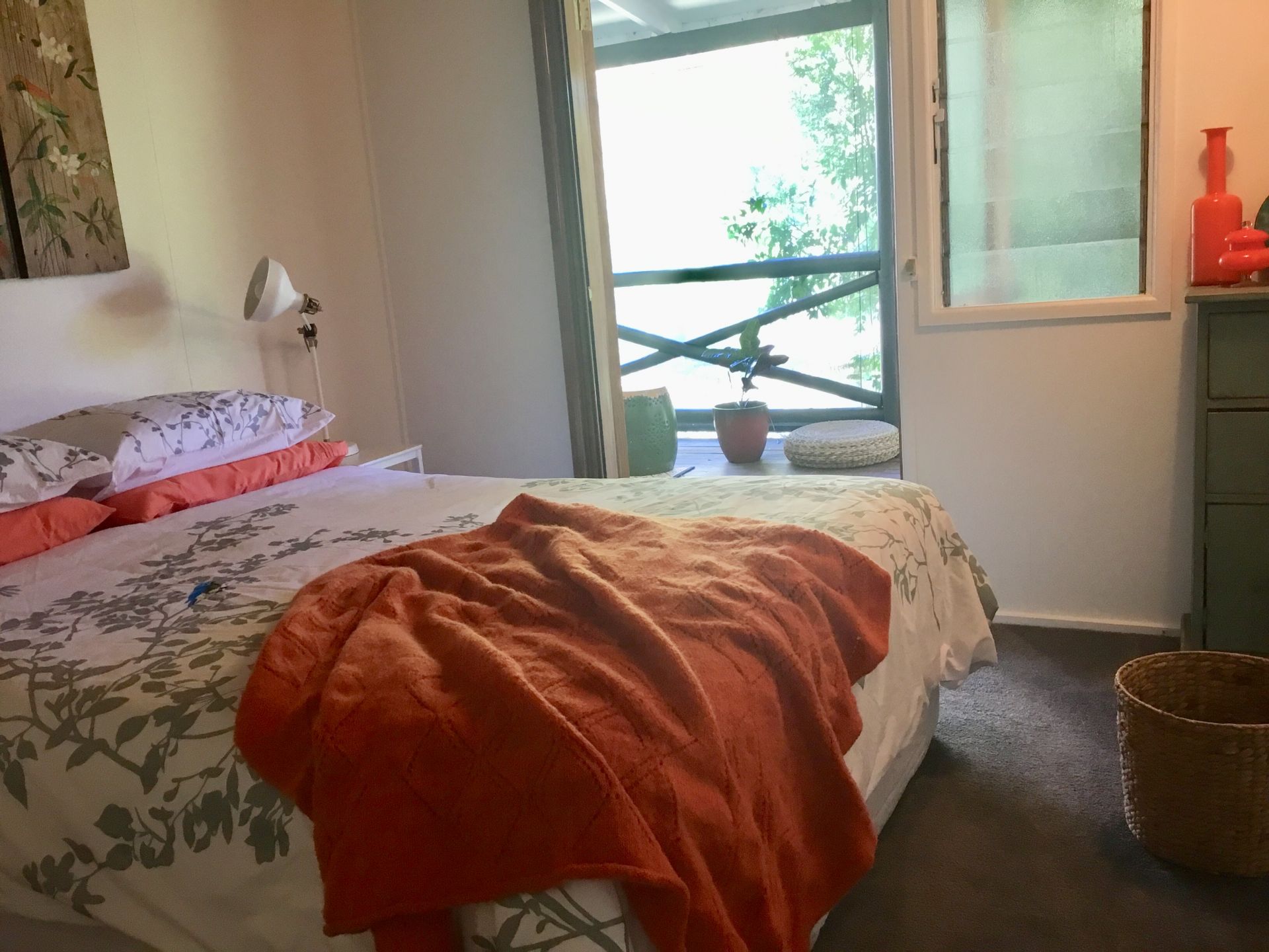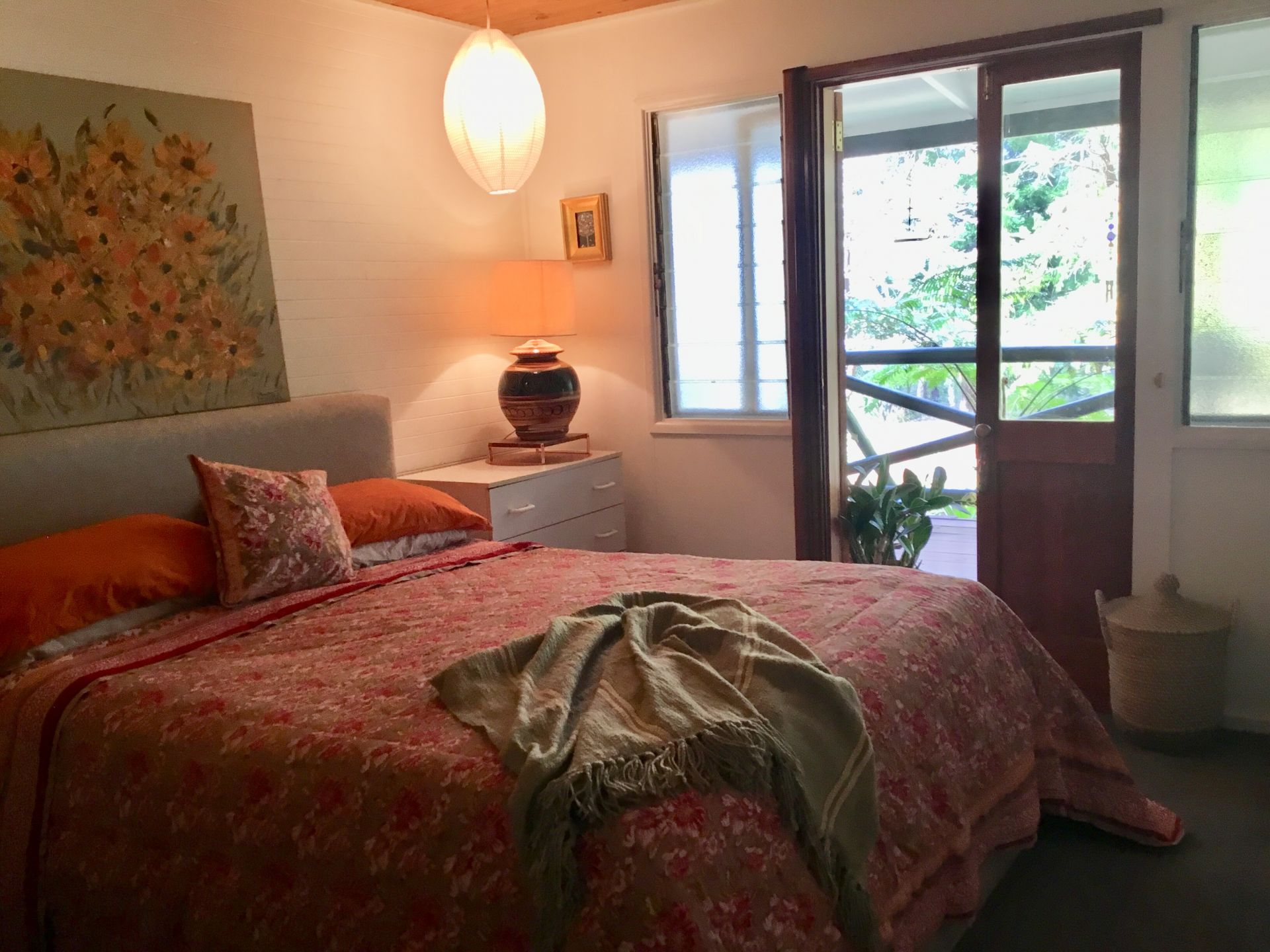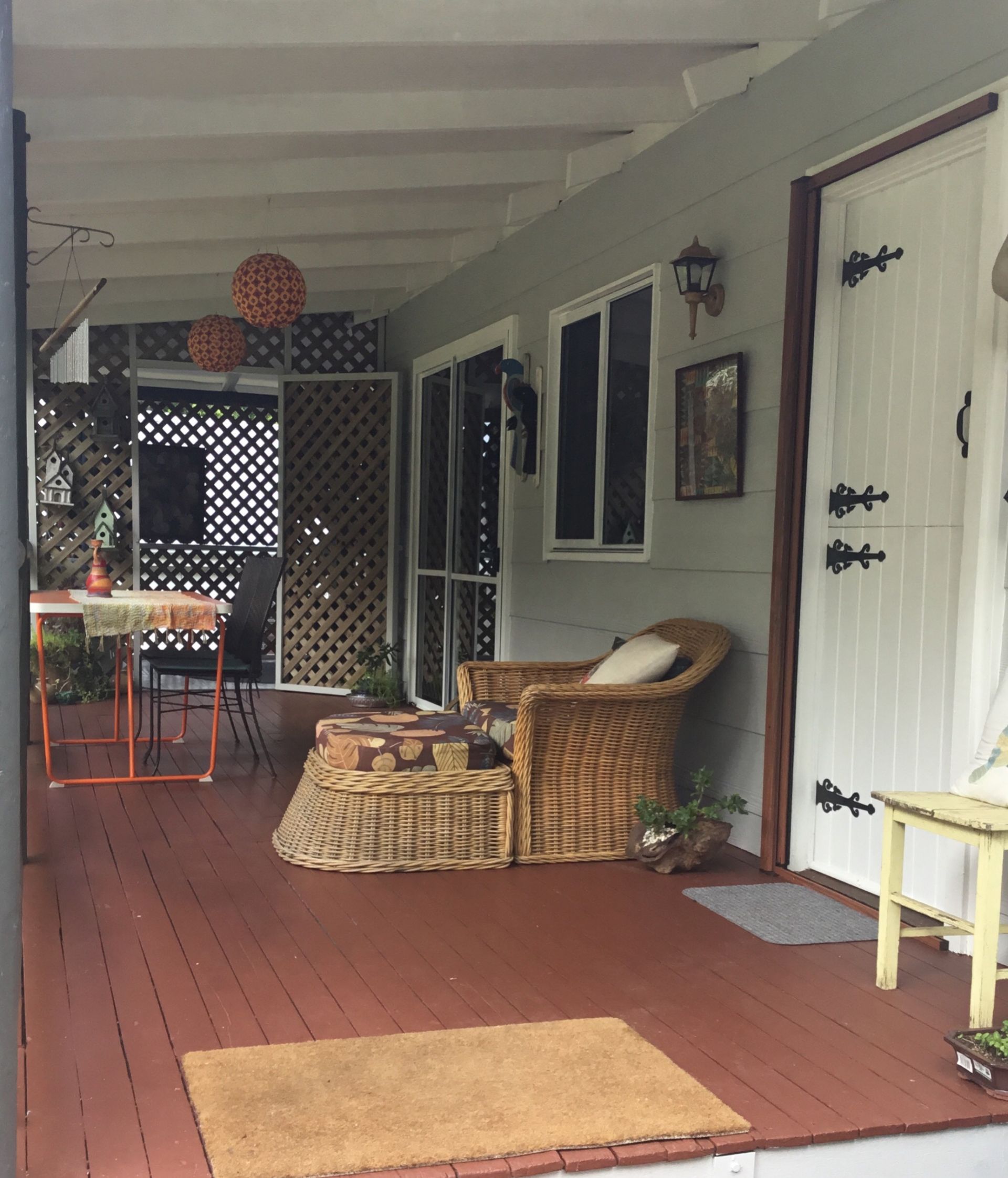 The comfortable house has 3 bedrooms all with biw and french doors onto verandah.