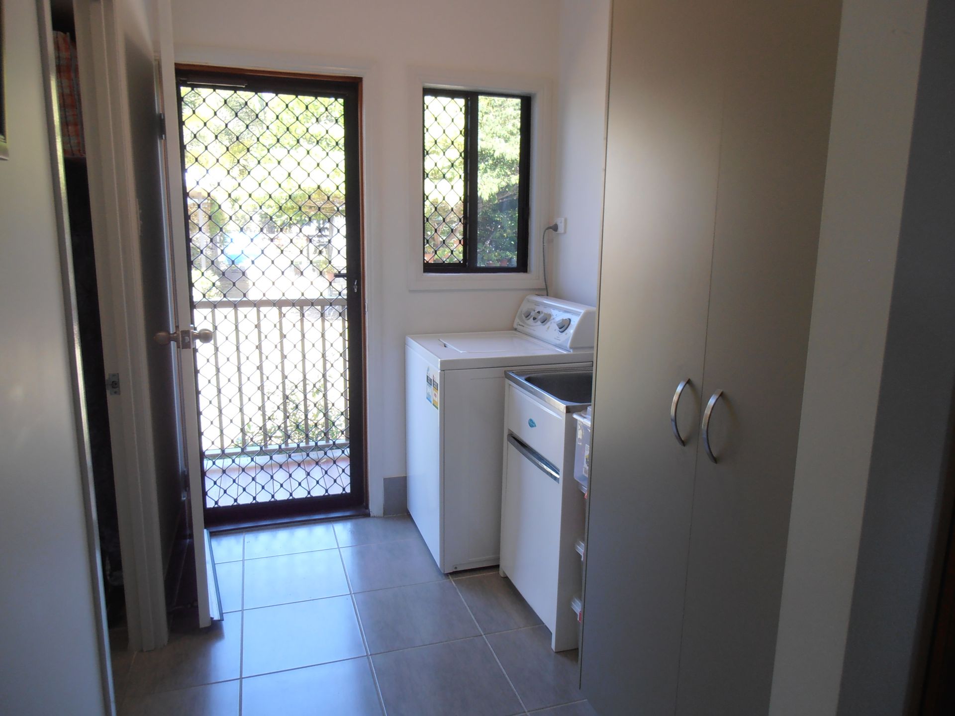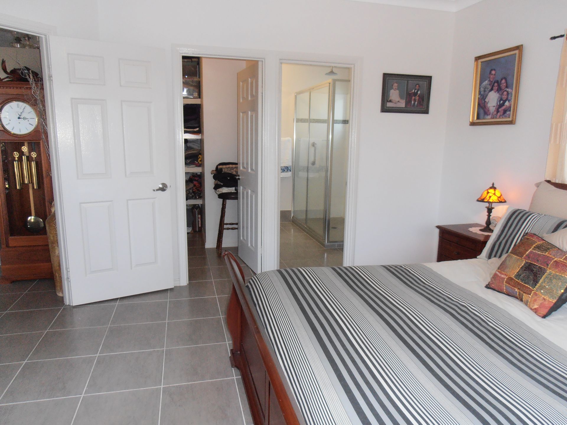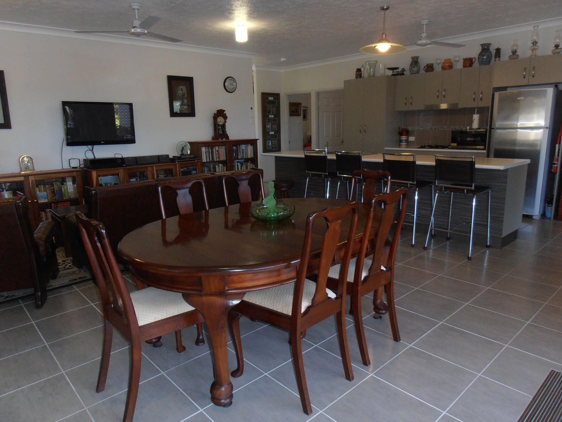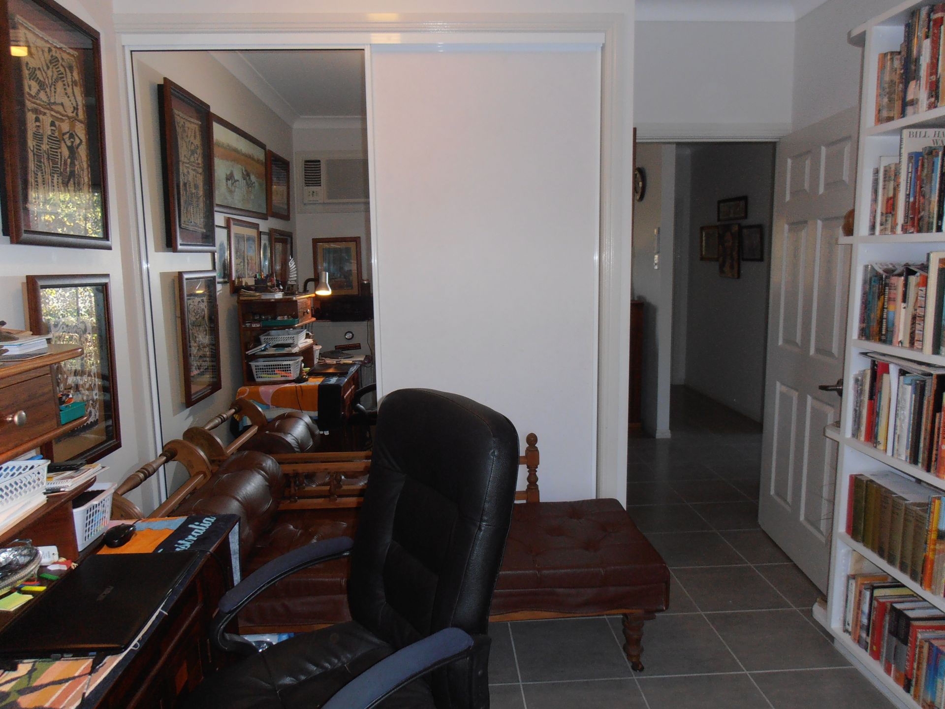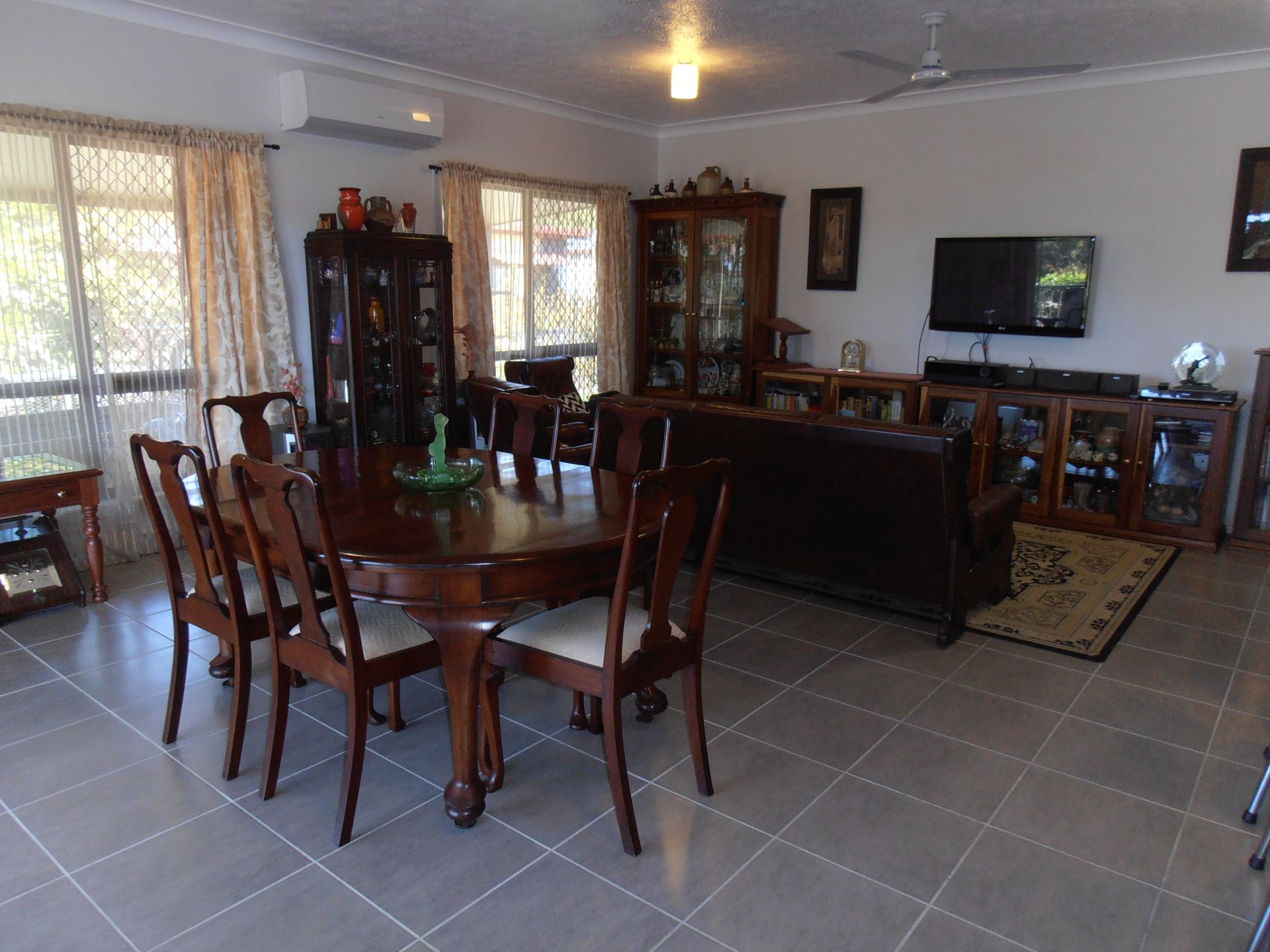 Main bedroom with large ensuite, and walk-in change room. There are three other bedrooms all with built in sliding door cupboards. The spare bedrooms are serviced by a second bathroom. (One bedroom is used as a library/study) All rooms have ceiling fans, screens, and air-conditioning.The main living area is fitted with a modern split system unit.