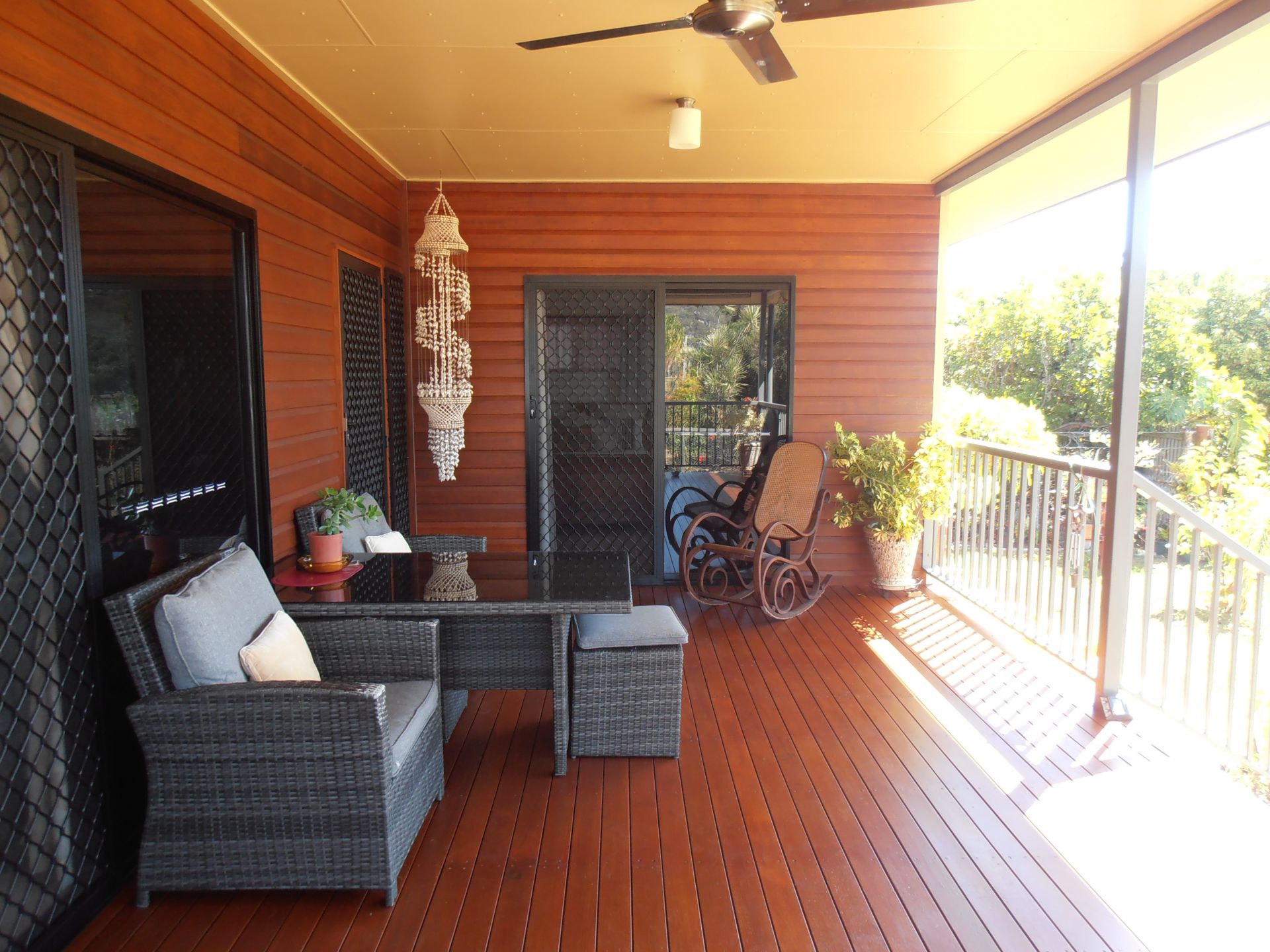 Large open plan living area with a big front timber decking and rear verandah to capture the sea breeze.