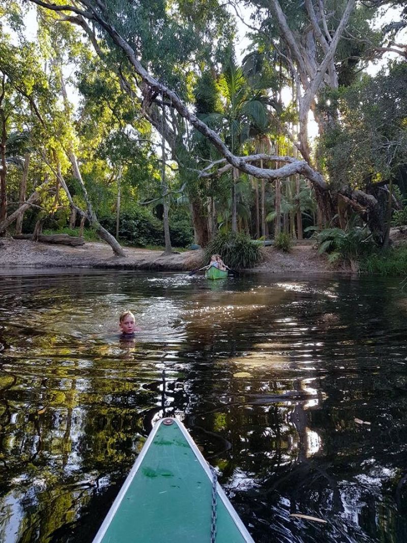 A very popular activity for guests and visitors at Ferns Hideaway is simply to enjoy the bush walks under the tall Melaleuca's lined Waterpark creek. This beautiful creek flows all year long and is only a two minute walk through the forest from the Restaurant. Spot the natural bird life , throw in a fishing line or paddle along in one of the eight Canadian canoes tethered on the shady palmed banks while admiring the mirror images of the pristine, peaceful fresh water creek. There is an abundance of friendly wild life to enjoy .