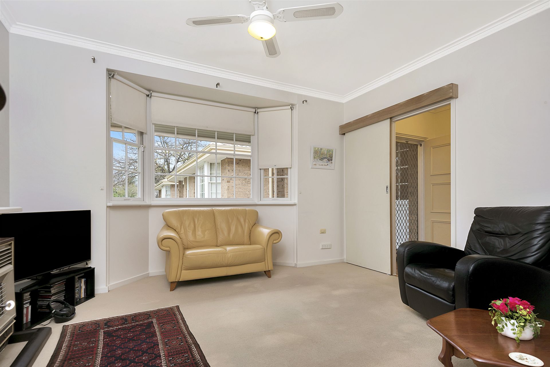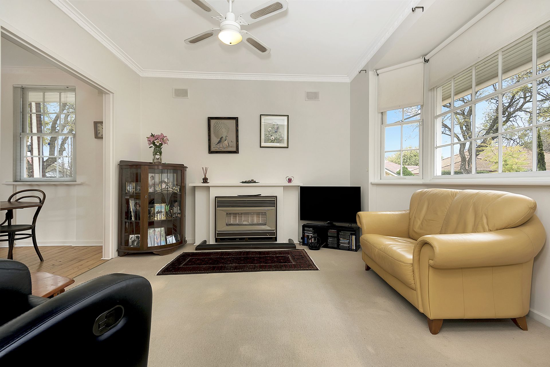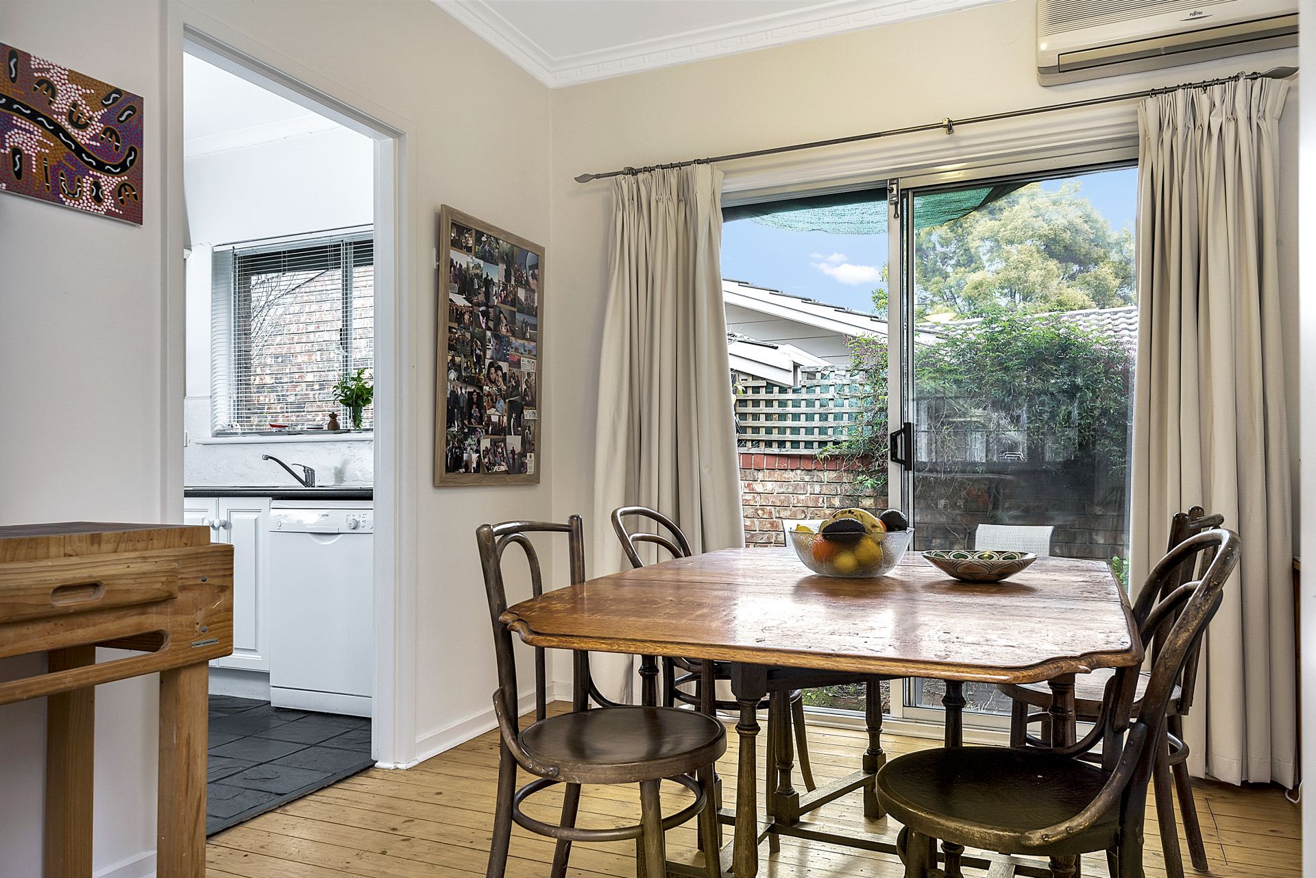 This area of the house has a gas heater in the living room and reverse cycle air-conditioning in the dining room.