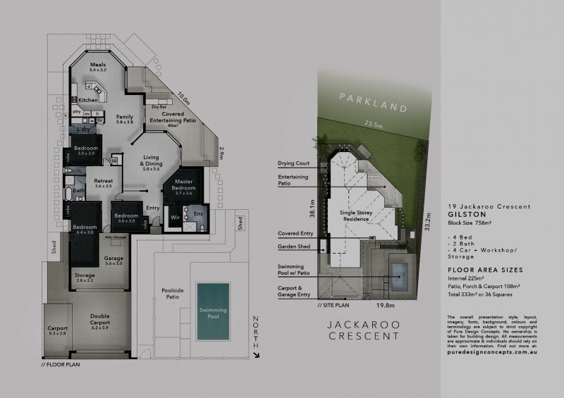 Beautifully presented family home. Very private, very secure. Able to be locked up and access can be granted from inside the home via a viewing camera/electronic intercom system. This 36sq single level home is only 5 mins to the M1, 10 mins to Robina Town Centre and only 20 mins to beautiful Gold Coast beaches including Surfers Paradise. It offers a very relaxing lifestyle away from the hustle and bustle with picturesque views of the hinterland with its breath taking sunsets. There are multiple living areas and a private retreat. Plenty of room for the toys with easy secure off street under cover parking for 4 cars with room to spare as well as a work shop. There is plenty of storage in the roof cavity accessed by a pull down ladder from the garage. 9-10 years old this home is in the best position of the Estate. The grassed back yard borders a fully maintained nature reserve. There is an in ground concrete/pebble pool with lighting and plenty of room for the BBQ or soak the sun up on sun bed.