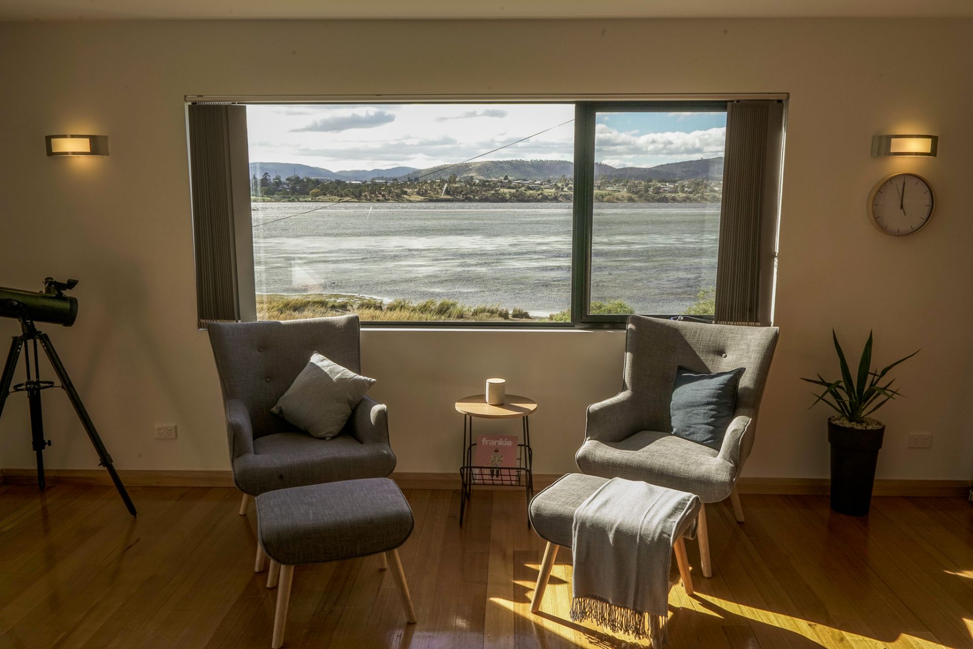 From the moment you arrive you are welcomed into a generous hallway, with Tas oak features that extend their way through to the spacious open plan kitchen/living room. This warm and beautifully lit space is designed for entertaining. The two large private decks leading off the main living area are a perfect place to unwind and soak up the sun. The main living space is positioned privately from the view of neighbouring houses and focuses on the breath taking views of the mountain and river.