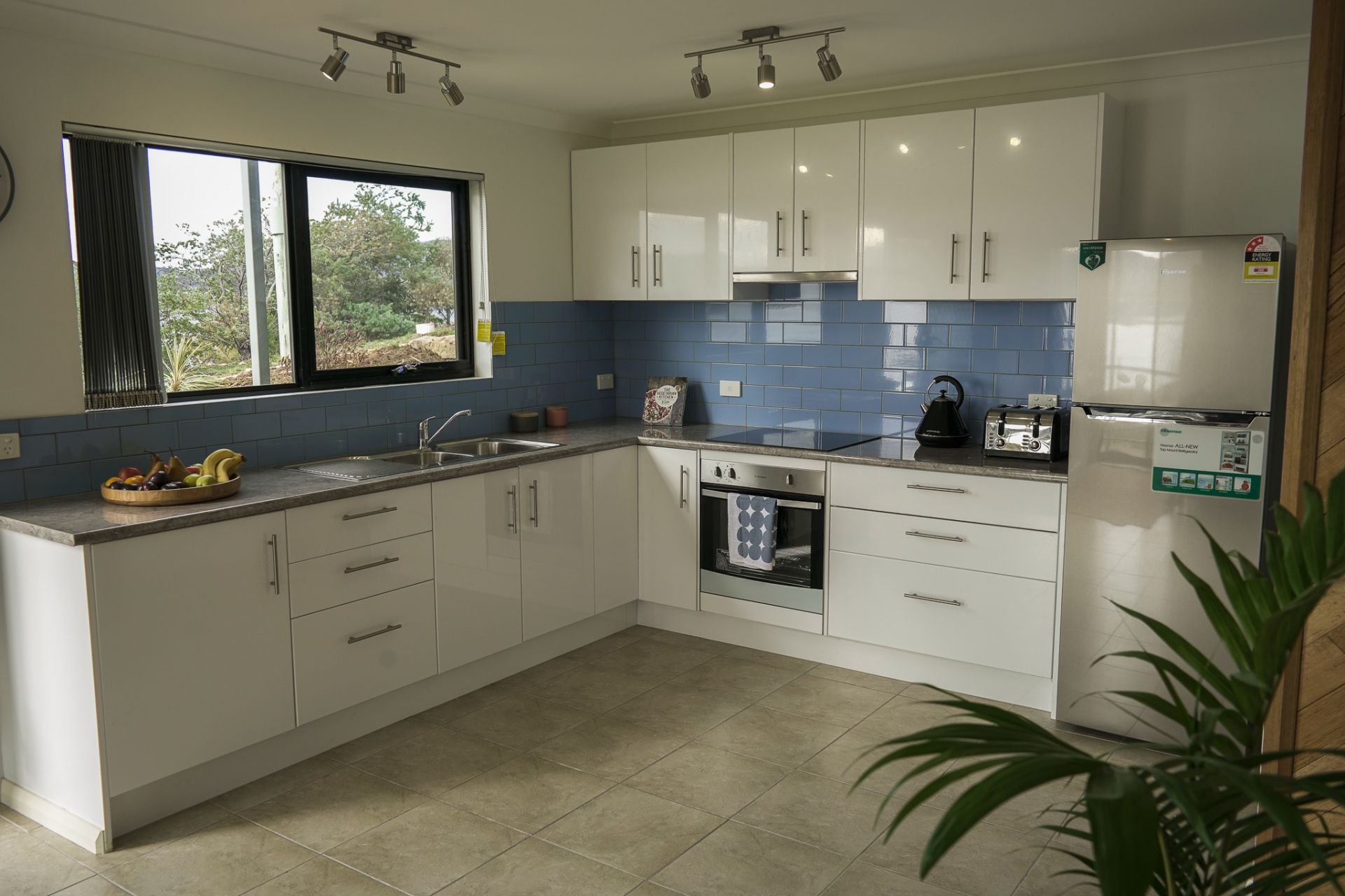 The kitchen is spacious with a large island bench and features solid stone bench tops, an induction stove and quality modern appliances.