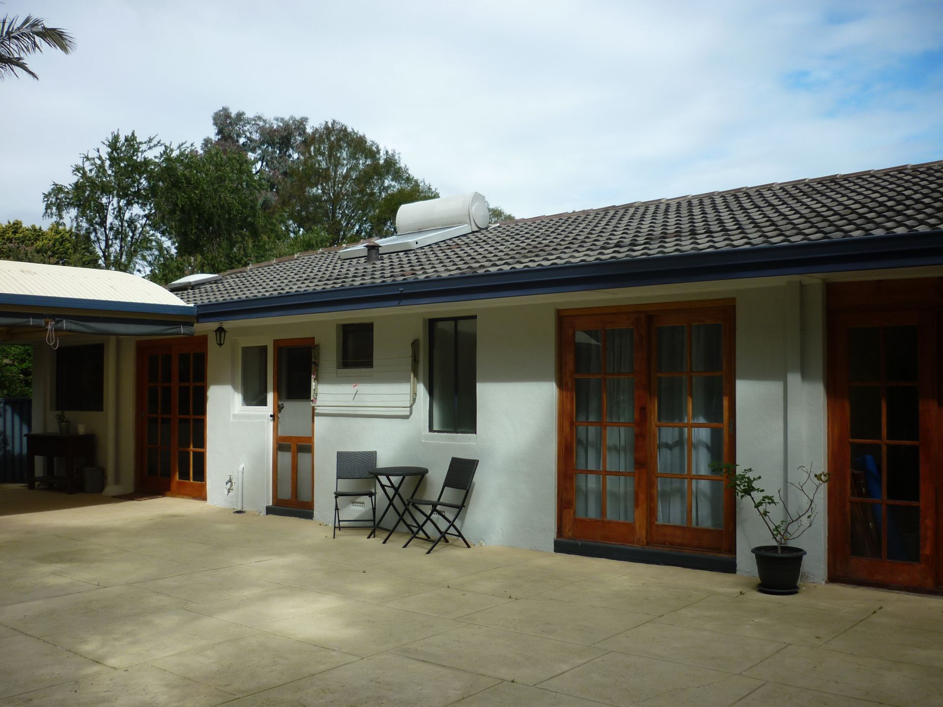 The garage which is under the main roof, has sliding french doors to the patio area making it a great option for use as a large games room.