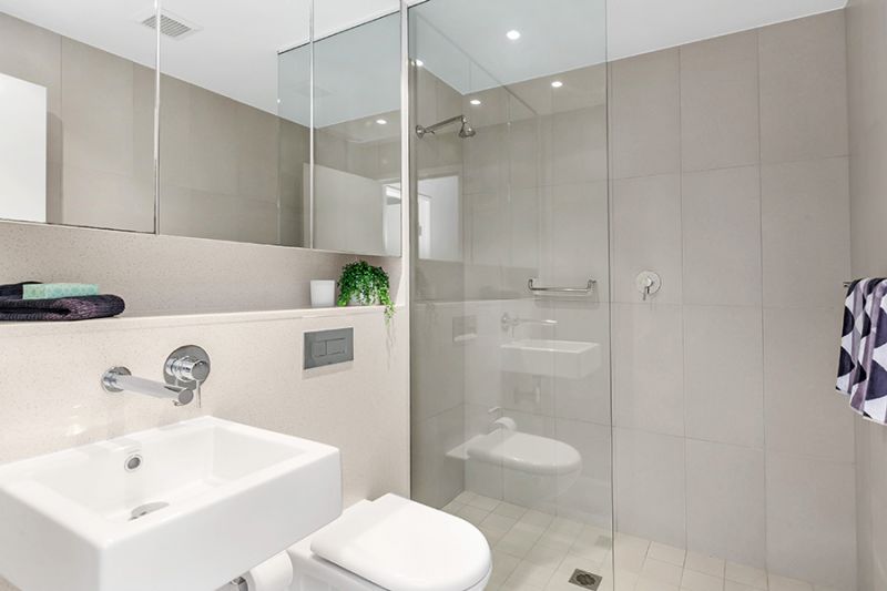 - Elegant main bathroom appointed with frameless shower screen and floor-to-ceiling tiles